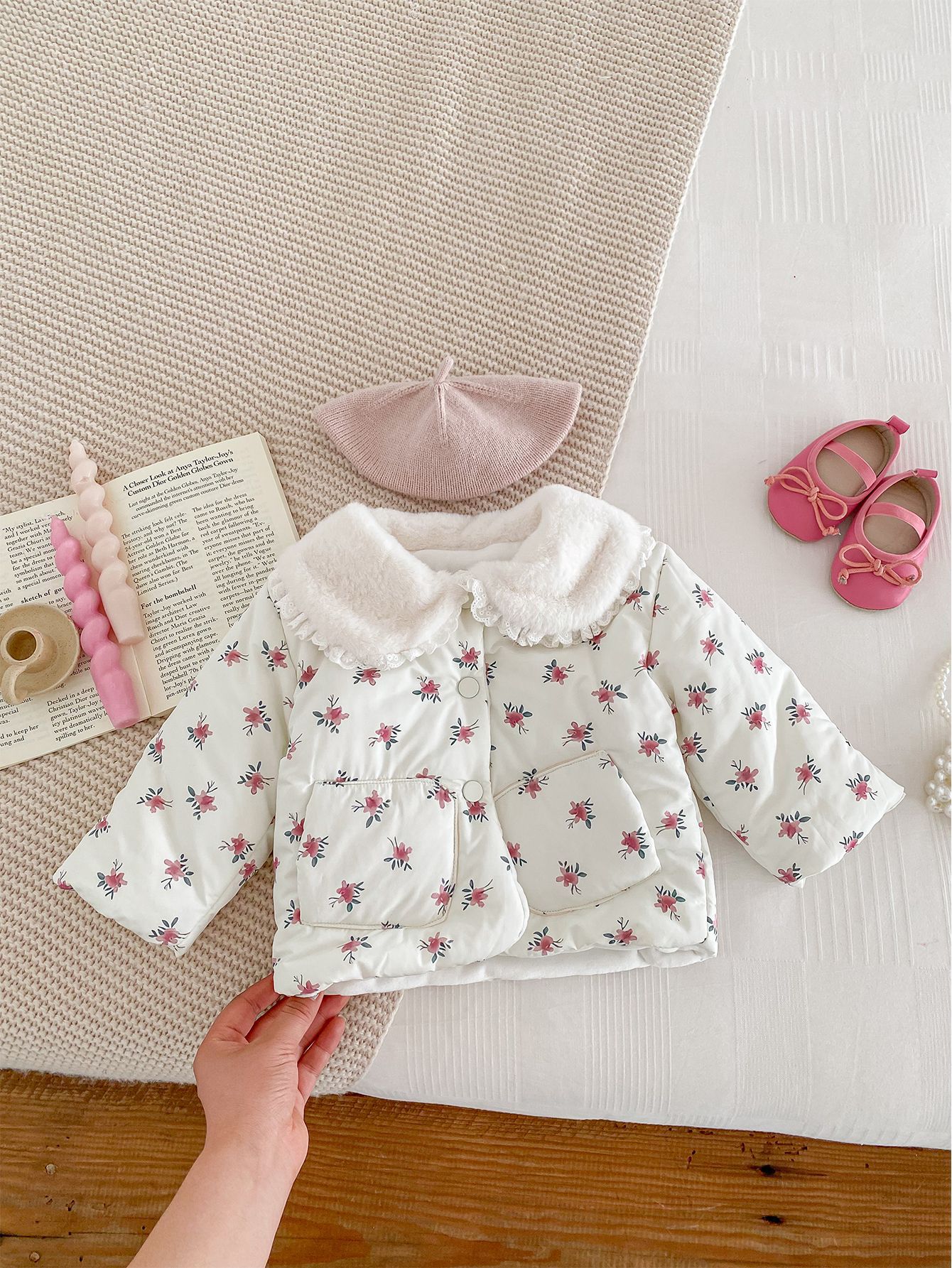 여아 코트 겨울 2023 새로운 서양 스타일 어린이 면 코트 아기 면 따뜻한 면 코트 겨울 어린이 면 코트