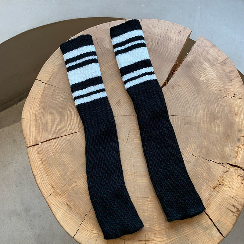 Maillard College 스타일 레트로 스포츠 스트라이프 니트 다리 커버 두꺼운 스택 양말 여성용 모든 매치 스트레이트 양말 가을과 겨울