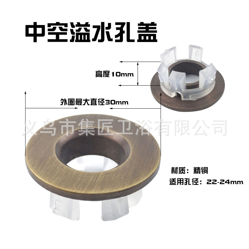 本链接内溢水孔装饰盖均为铜材质、克重均约12g左右【会存在些许误差】单个OPP袋装,一包100个,包装数量如有其他要求可联系客服