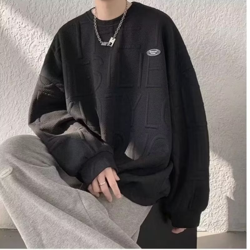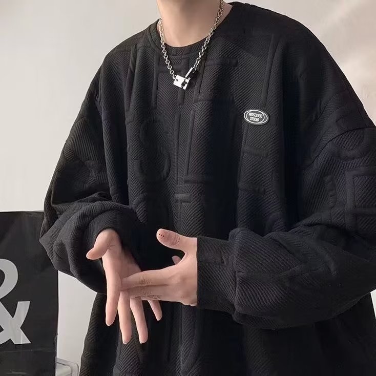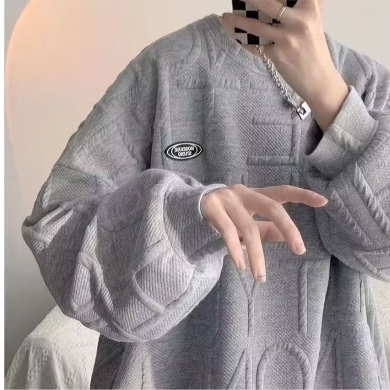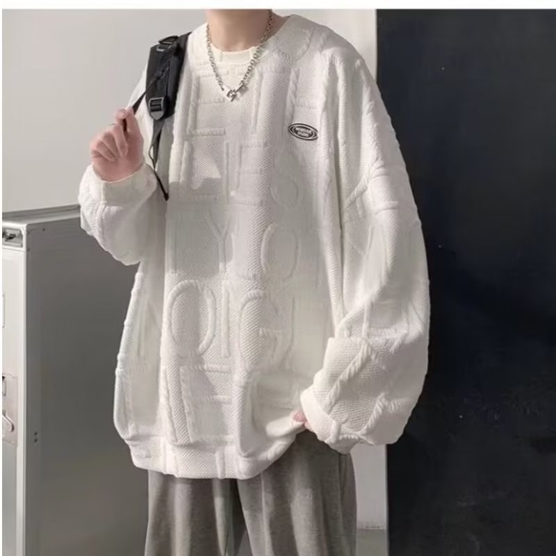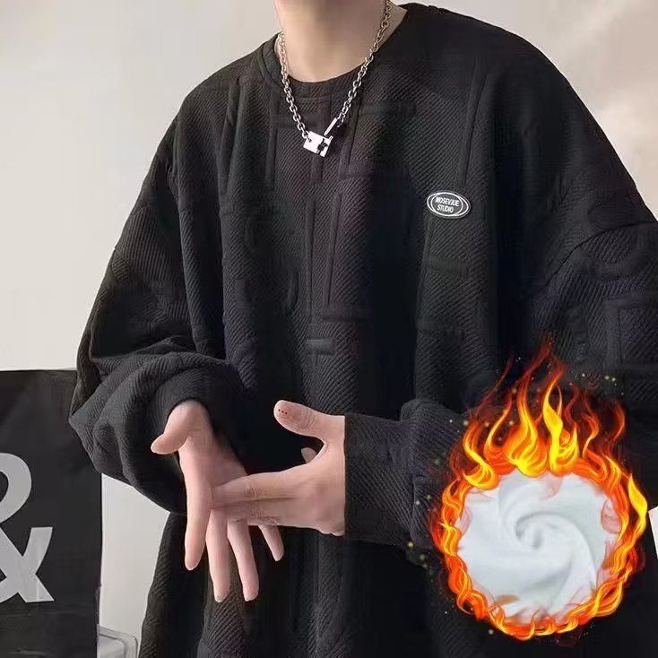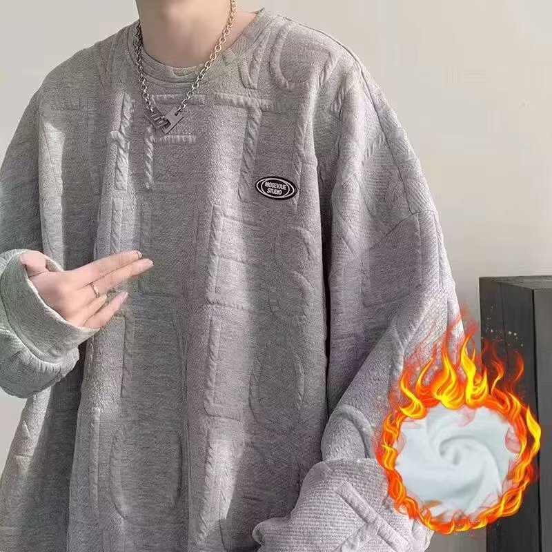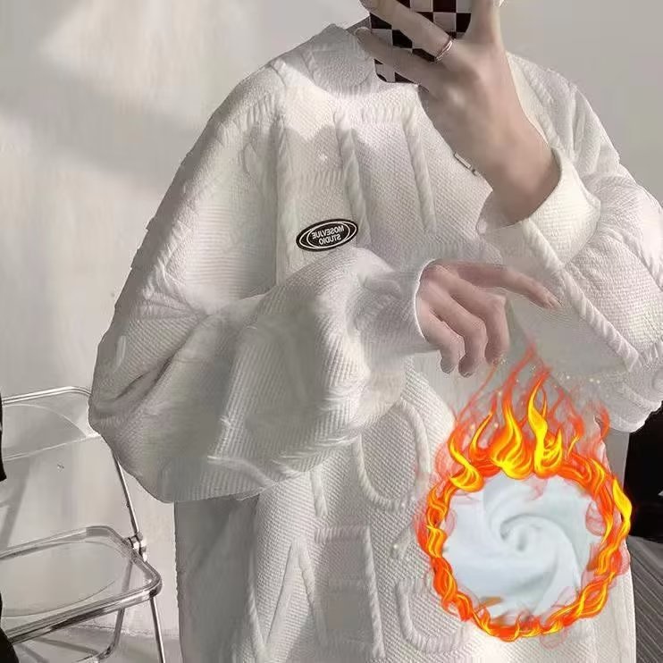 와플 스웨터 남자의 두꺼운 새로운 가을과 겨울 커플 원피스 라운드 넥 소년 봄 화이트 탑 벨벳 재킷
