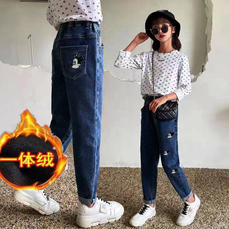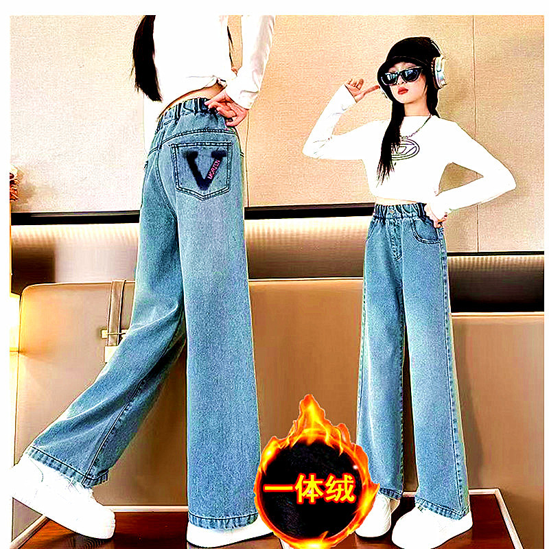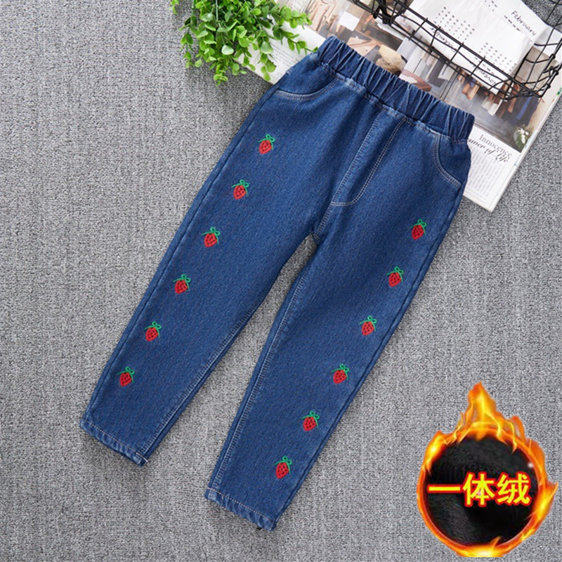 여자 기모 청바지 새로운 어린이 원피스 벨벳 서양식 스트레치 대형 어린이 따뜻한 바지 제조 업체 도매 어린이 바지스토어 가기