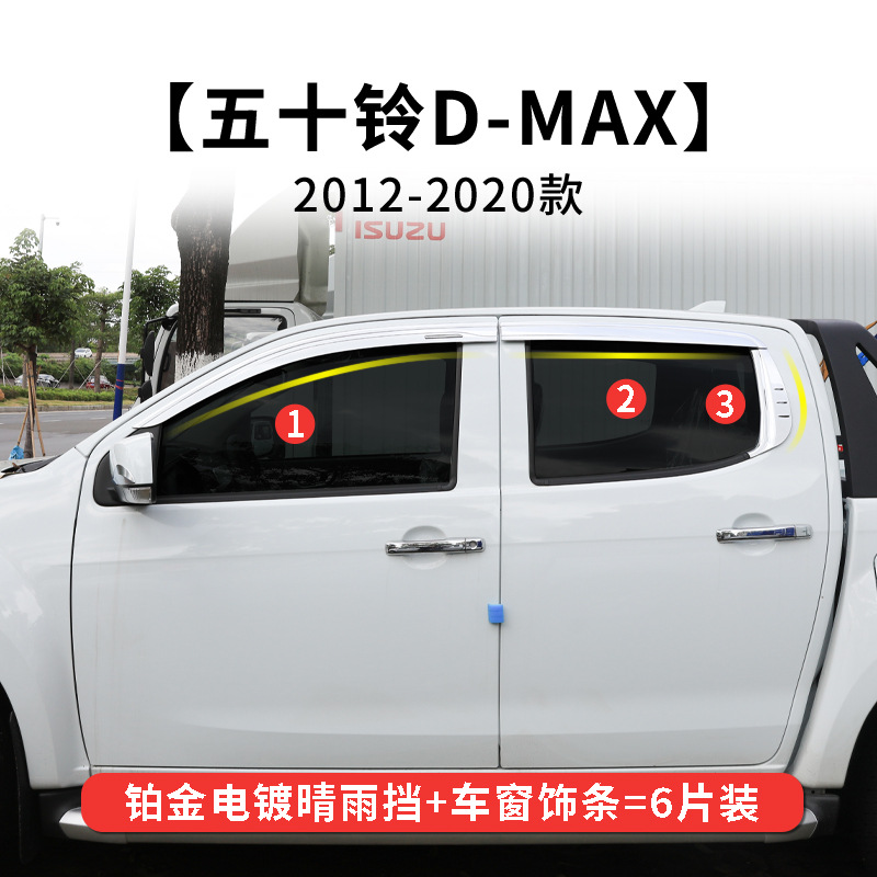 • [D-MAX] 2012-2020 플래티넘 레인 실드 + 윈도우 트림 (6 피스 팩)