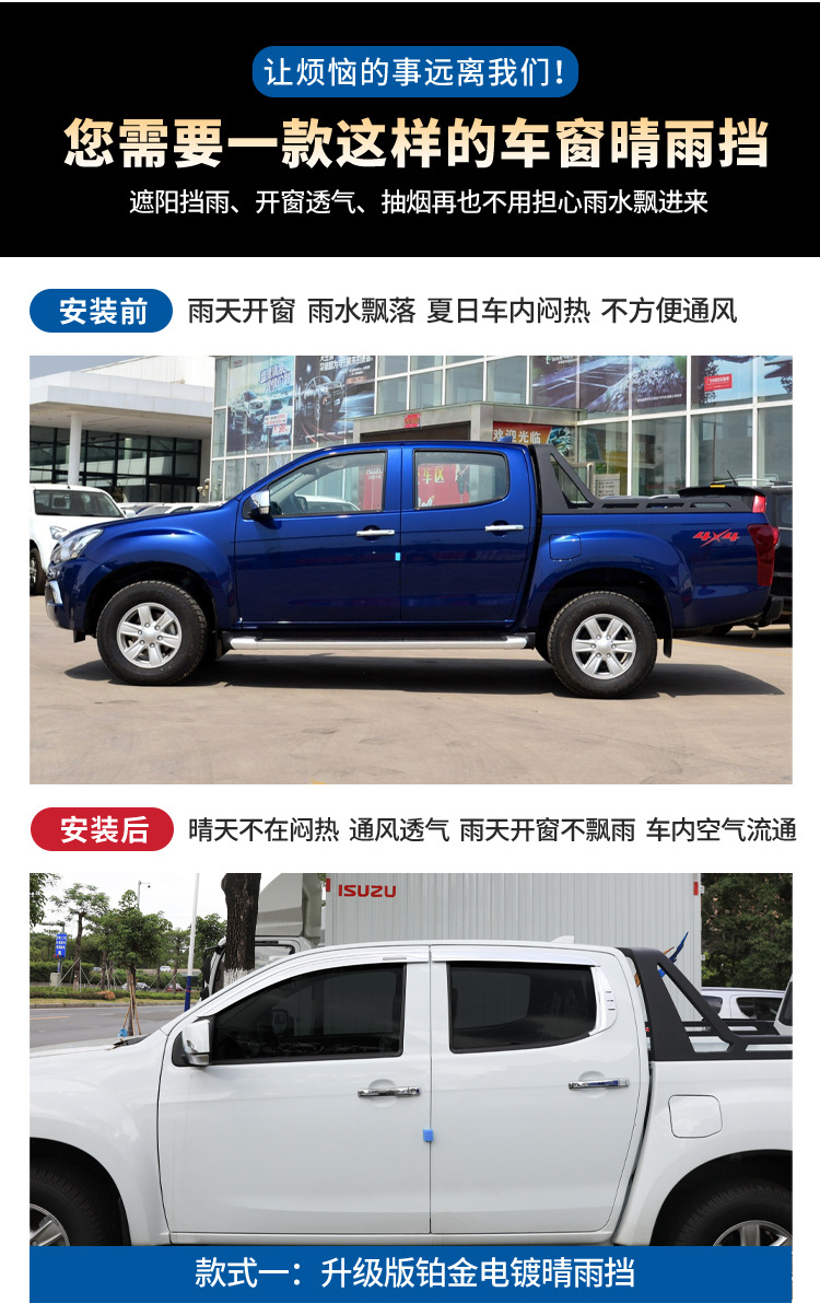 Tesinrui는 이스즈 d-max 레인 실드 자동차 창 비 눈썹 수정 mu-x 레인 실드 외부 액세서리에 적합합니다스토어 가기