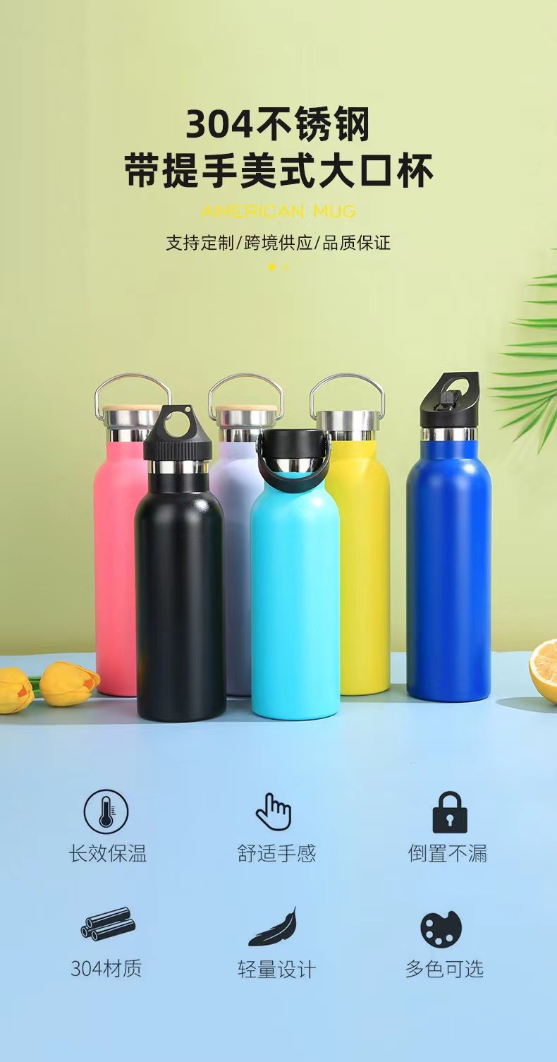 휴대용 야외 스포츠 등산 편리한 대용량 주전자 공장 간단 큰입 304 스테인리스 보온병 컵