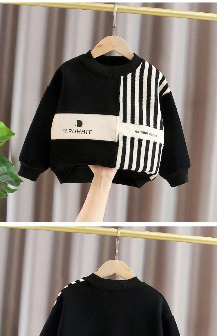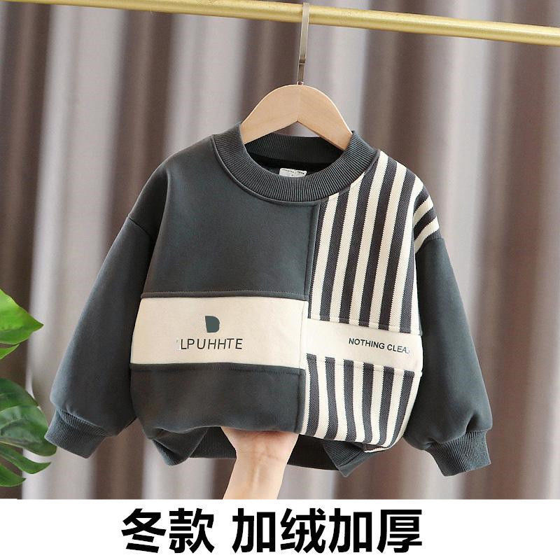 어린이 봄 스웨터 2023 신상품 어린 소년의 봄 원피스 잘 생긴 탑 소년의 아기 기모 베이스 셔츠 아동복 유행