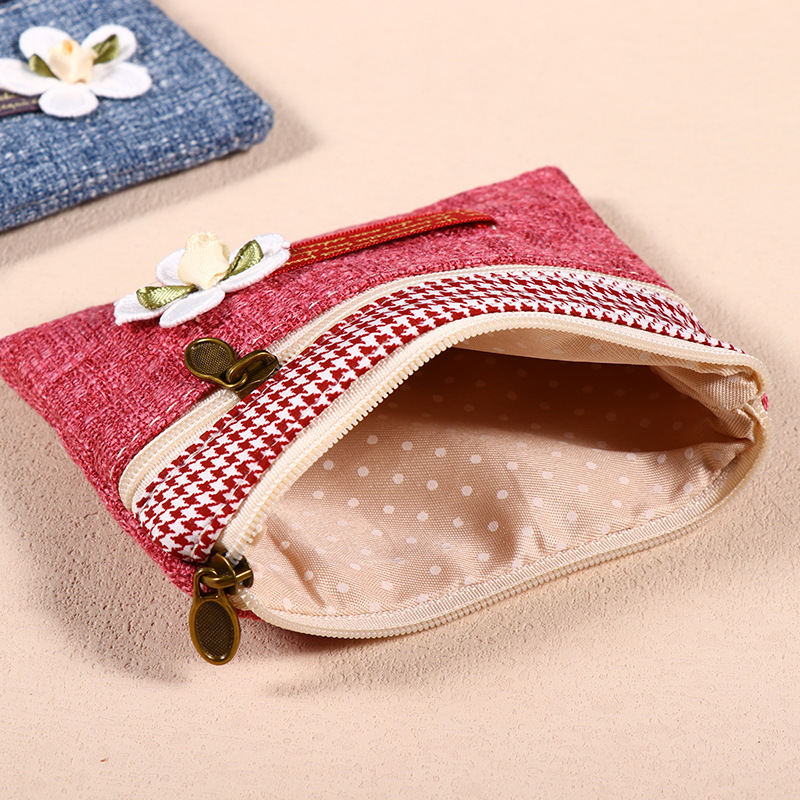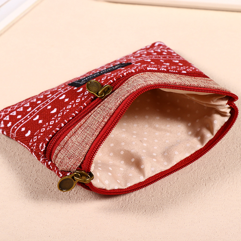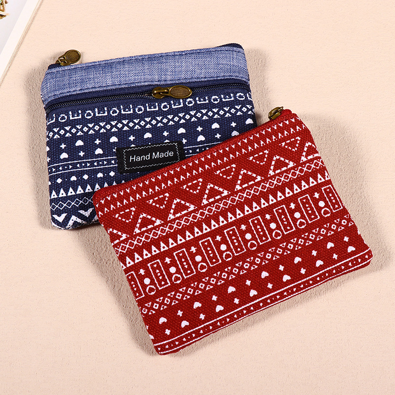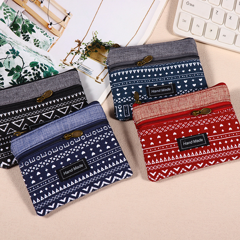 에스닉 스타일 동전 지갑 보관 가방 여성용 핸드 코인 백 패브릭 더블 지퍼 카드 백 심플 모든 매치 공장