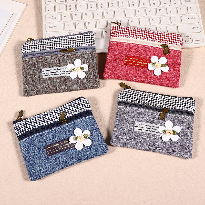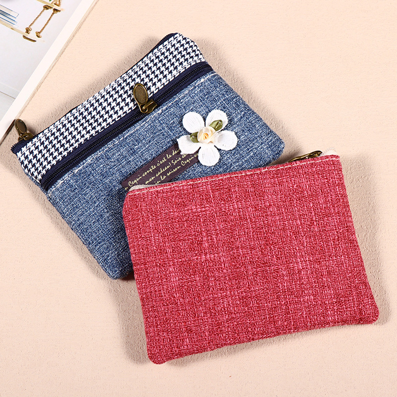 에스닉 스타일 동전 지갑 보관 가방 여성용 핸드 코인 백 패브릭 더블 지퍼 카드 백 심플 모든 매치 공장스토어 가기