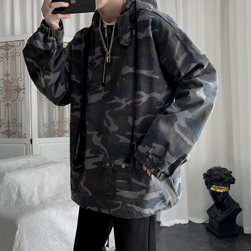 아메리칸 스타일 레트로 차지 재킷 남성 트렌디 브랜드 봄 위장 후드 작업복 탑 2024 트렌드스토어 가기