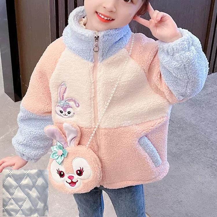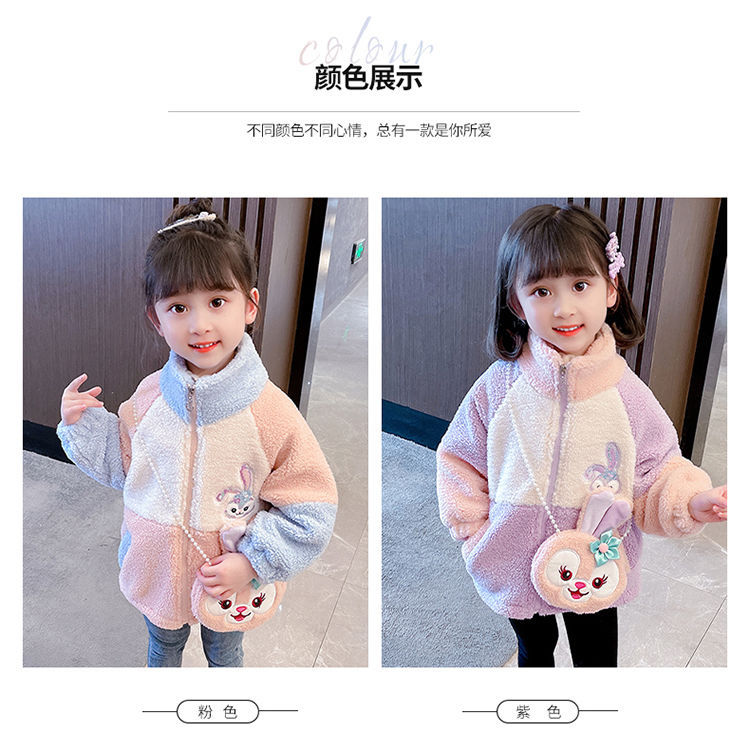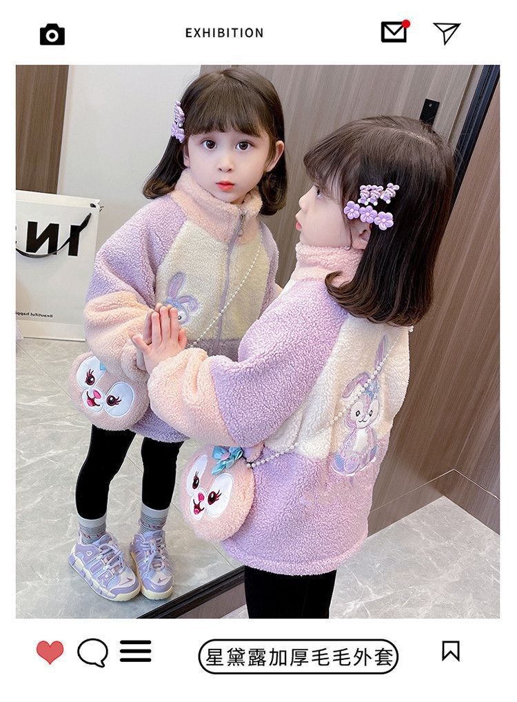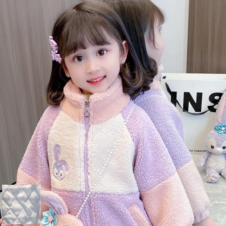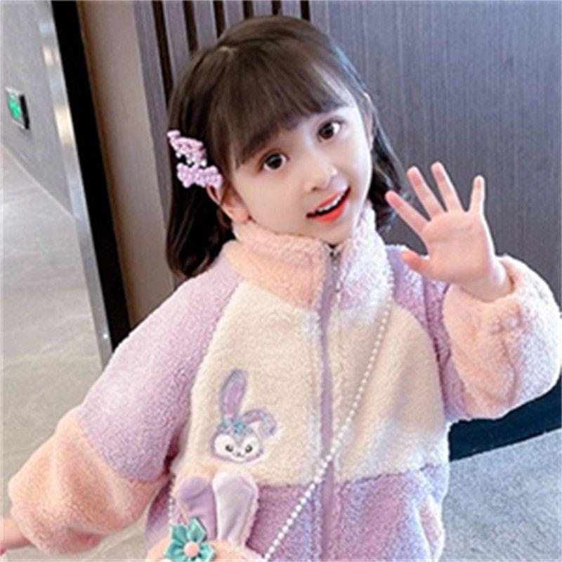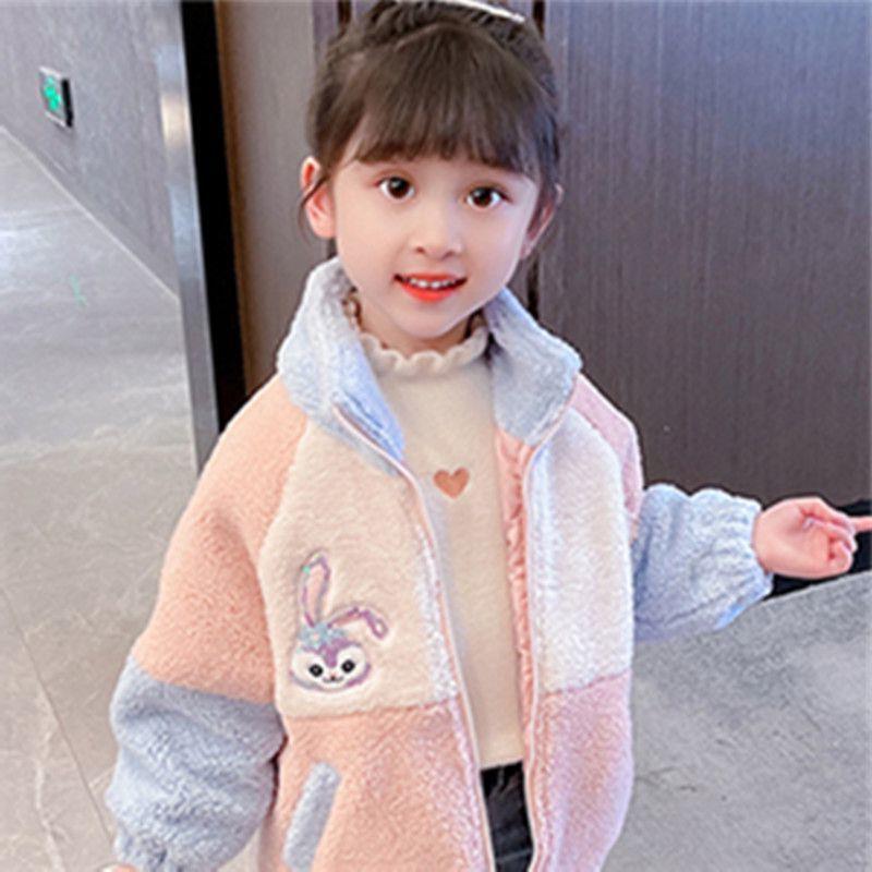 소녀 스타 Dailou 두꺼운 모직 스웨터 새로운 가을과 겨울 따뜻한 코트 아기 소녀 만화 컬러 블록 카디건 탑