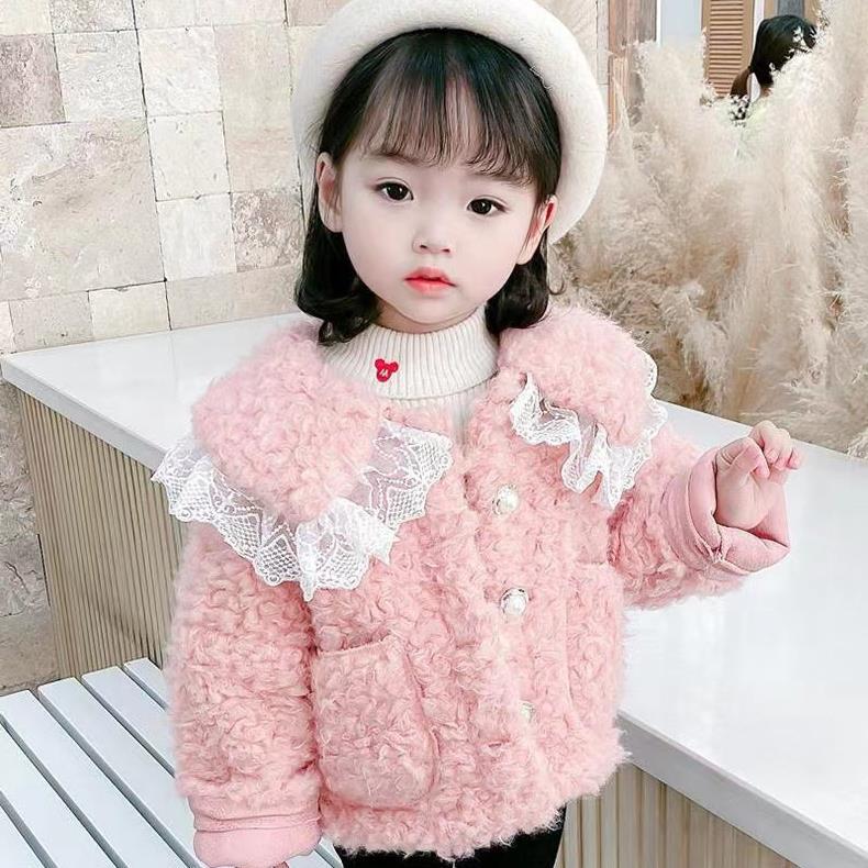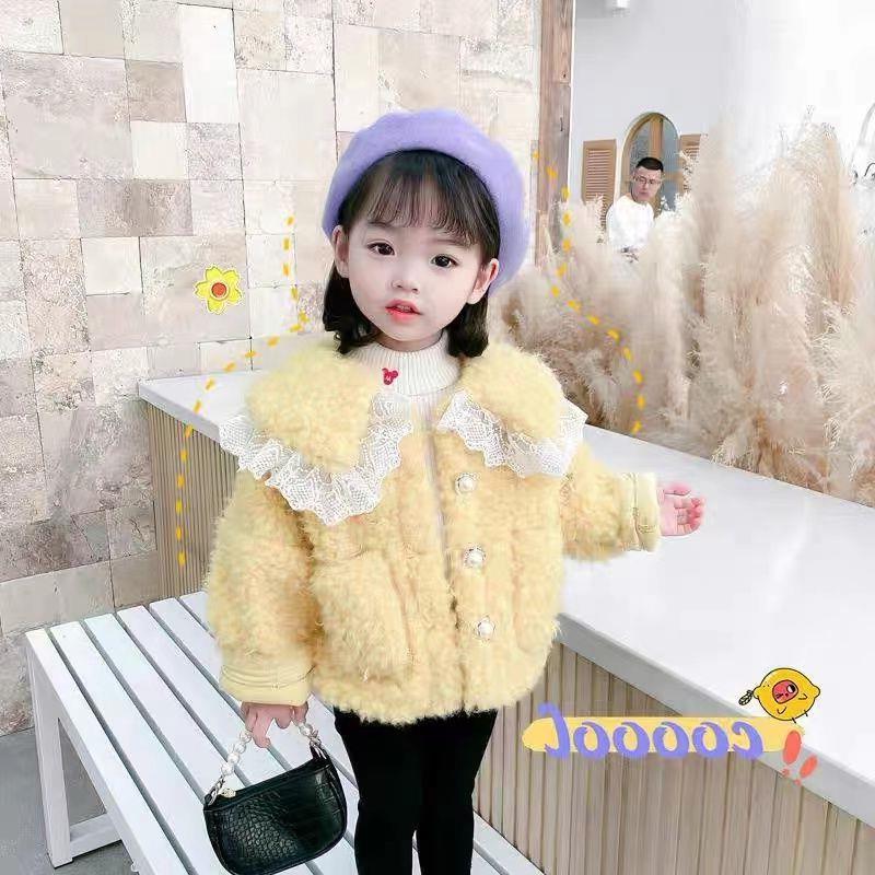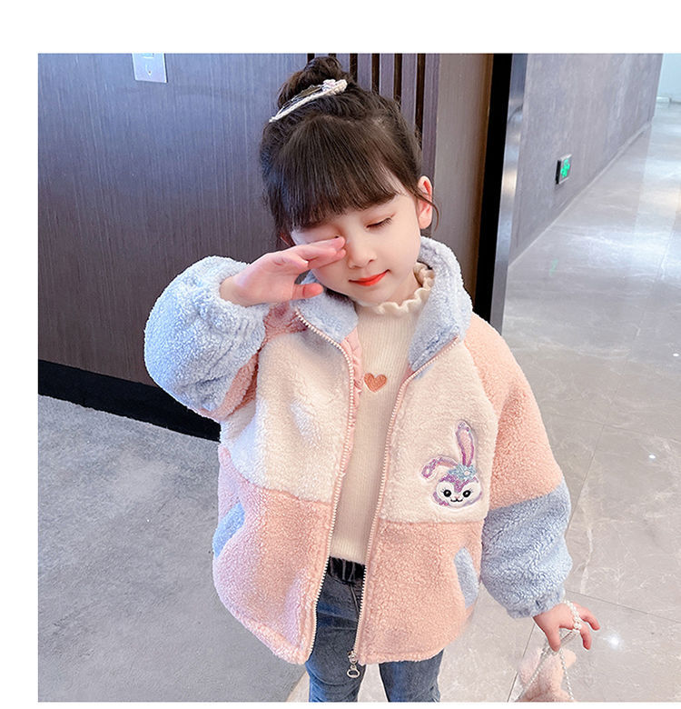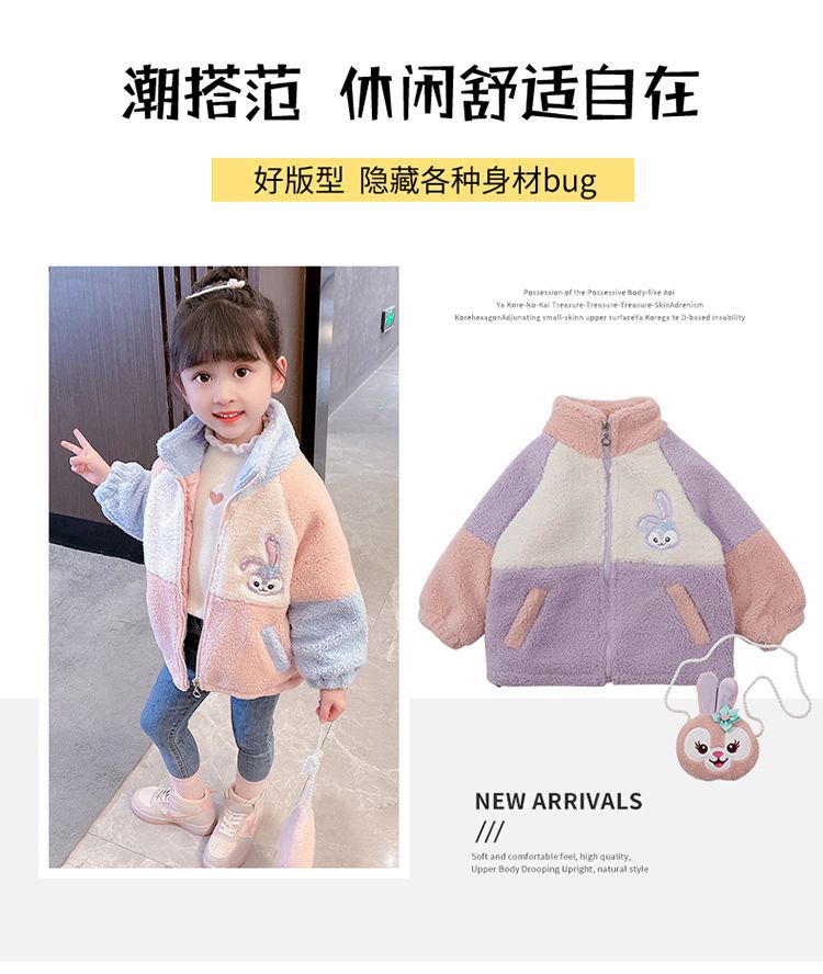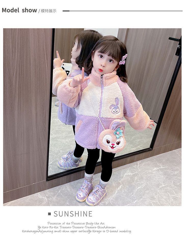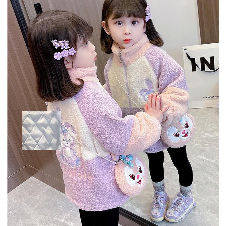 소녀 스타 Dailou 두꺼운 모직 스웨터 새로운 가을과 겨울 따뜻한 코트 아기 소녀 만화 컬러 블록 카디건 탑