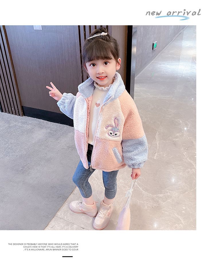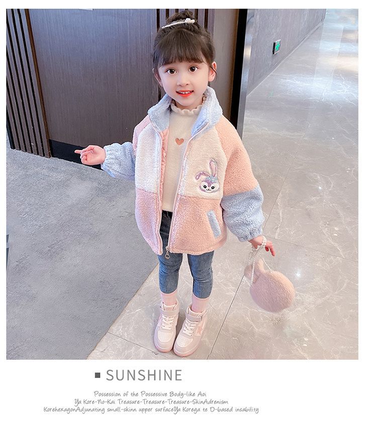 소녀 스타 Dailou 두꺼운 모직 스웨터 새로운 가을과 겨울 따뜻한 코트 아기 소녀 만화 컬러 블록 카디건 탑스토어 가기