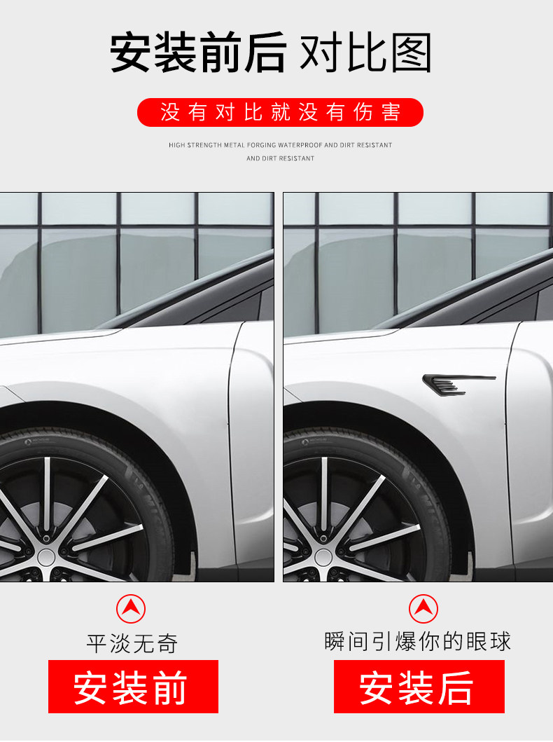 금속 자동차 스티커 펜더 사이드 로고 꼬리 로고 후드 상어 아가미 공기 콘센트 자동차 수정 자동차 스티커