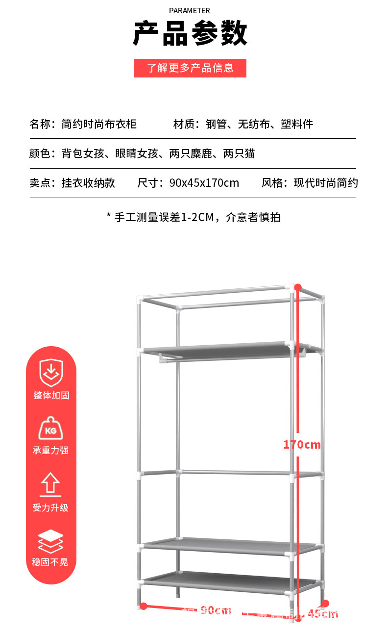 产品名称:75CM卡通图案简易布衣柜收配送2个收纳盒