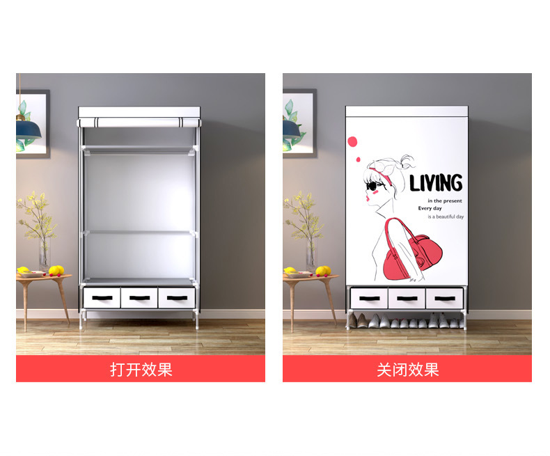 产品名称:90CM个性时尚图案布衣柜配送3个收纳盒