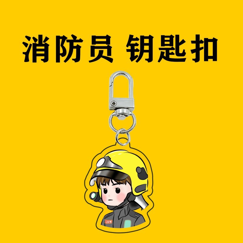 화재 열쇠 고리 기념품 인형 펜던트 아크릴 만화 책가방 119 프로모션 경찰 양면 파란색 친구스토어 가기