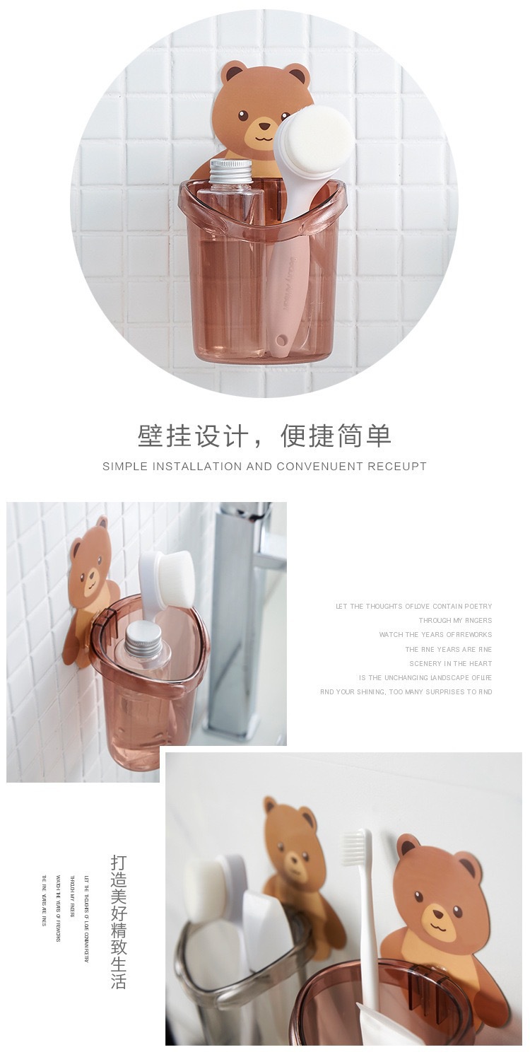 화장실 곰 포옹 칫솔 컵 치약 저장 랙 욕실 펀치 프리 벽걸이 배수 곰 보관 컵
