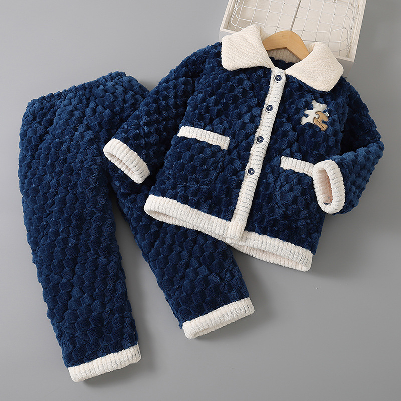 겨울 소년과 소녀 3 층 면 기모 두꺼운 어린이 잠옷 소년과 소녀 플란넬 가정 옷