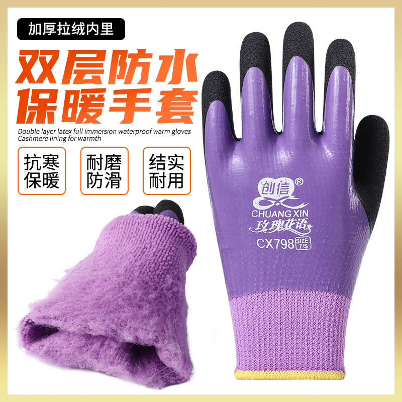Chuangxin CX798 숙녀 스몰 사이즈 노동 보호 겨울 따뜻한 내마모성 미끄럼 방지 두꺼운 기모 담근 방수 장갑