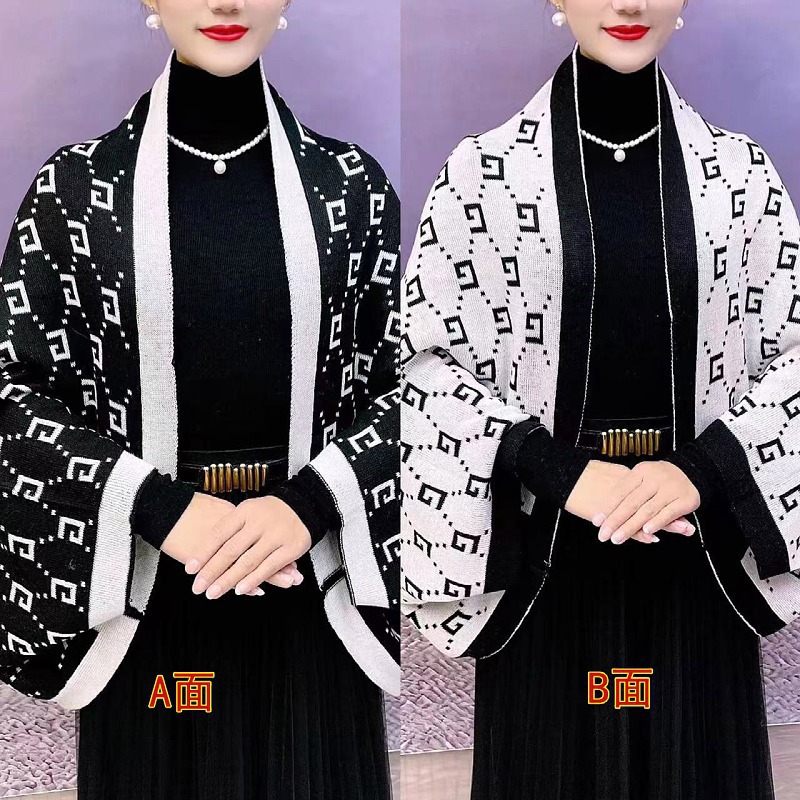 가을과 겨울 따뜻한 패션 우아한 양면 니트 가디건 여성용 레이디 숄 세련된 박쥐 슬리브 모든 매치 숄