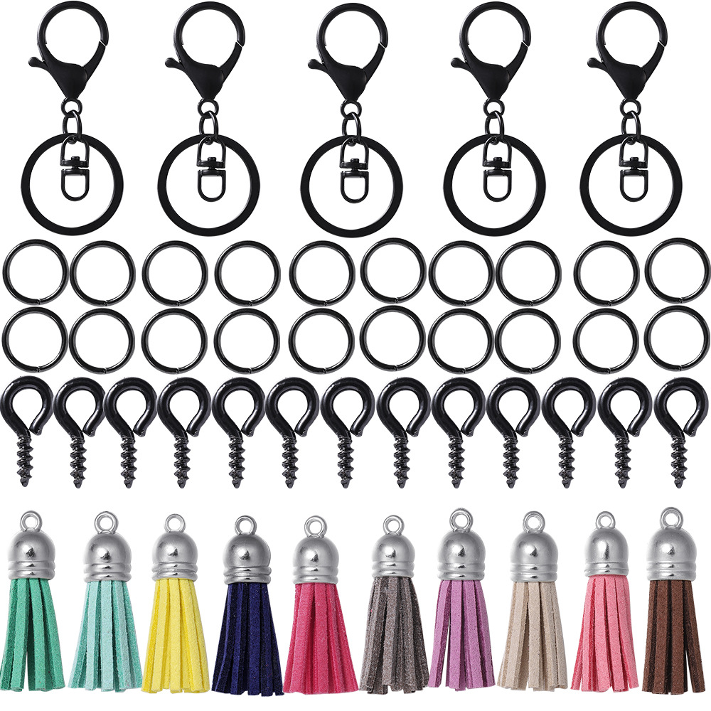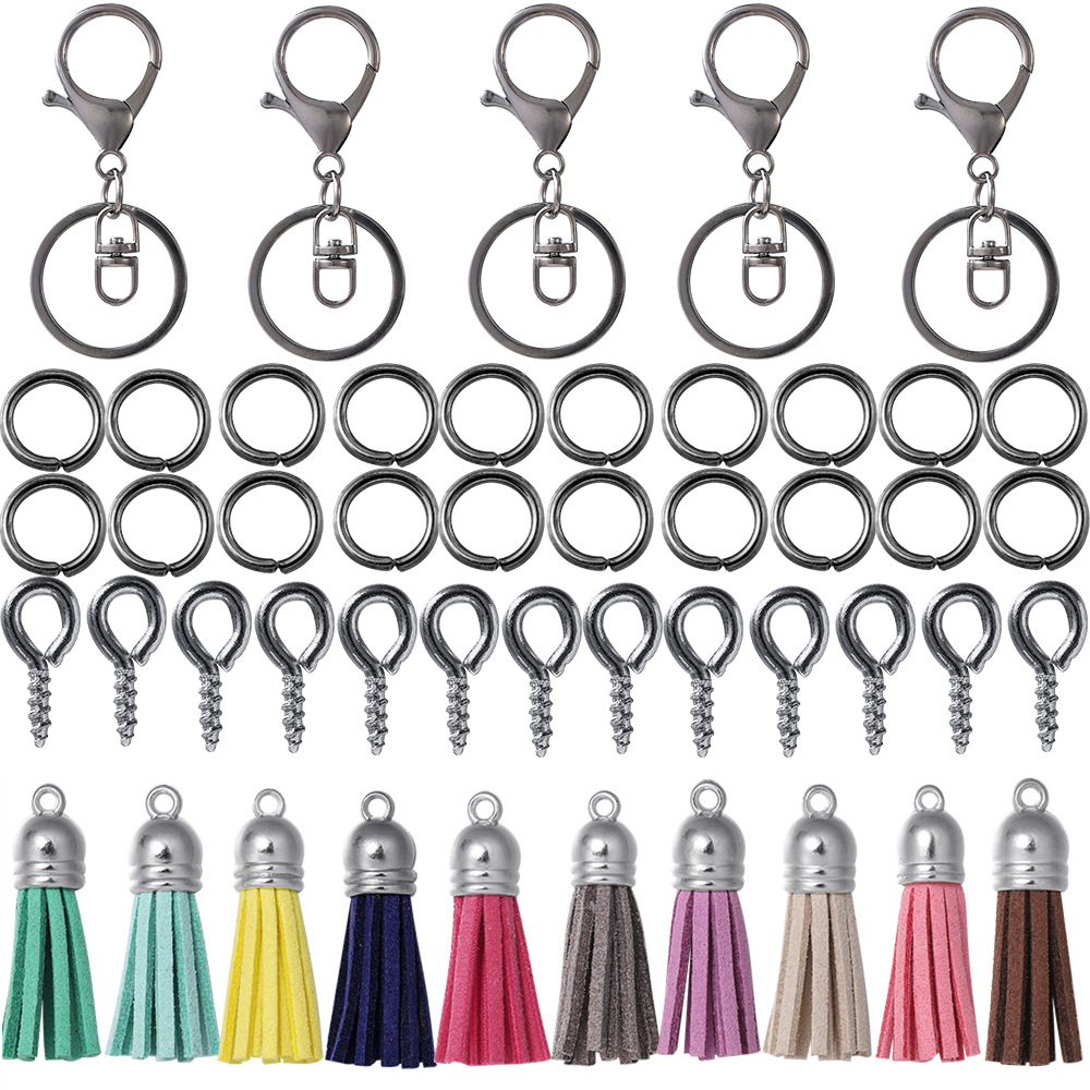 보석 재료 가방 술 열쇠 고리 세트 세트 DIY 열쇠 고리 펜던트 오프닝 반지 재료 조합 액세서리
