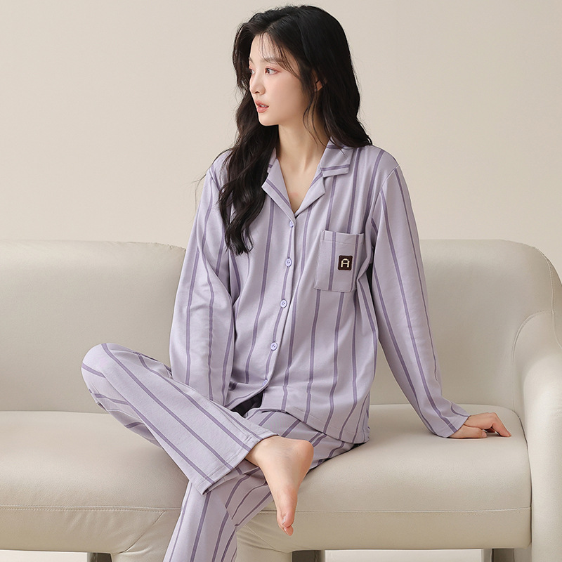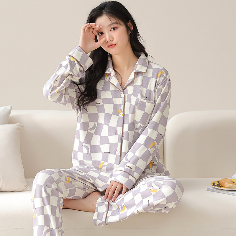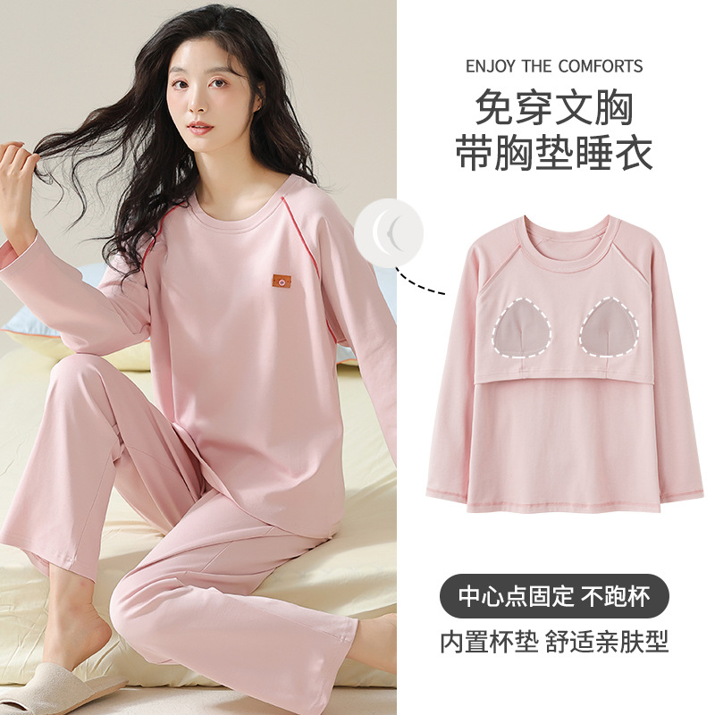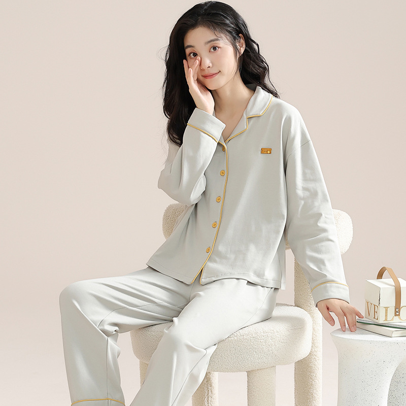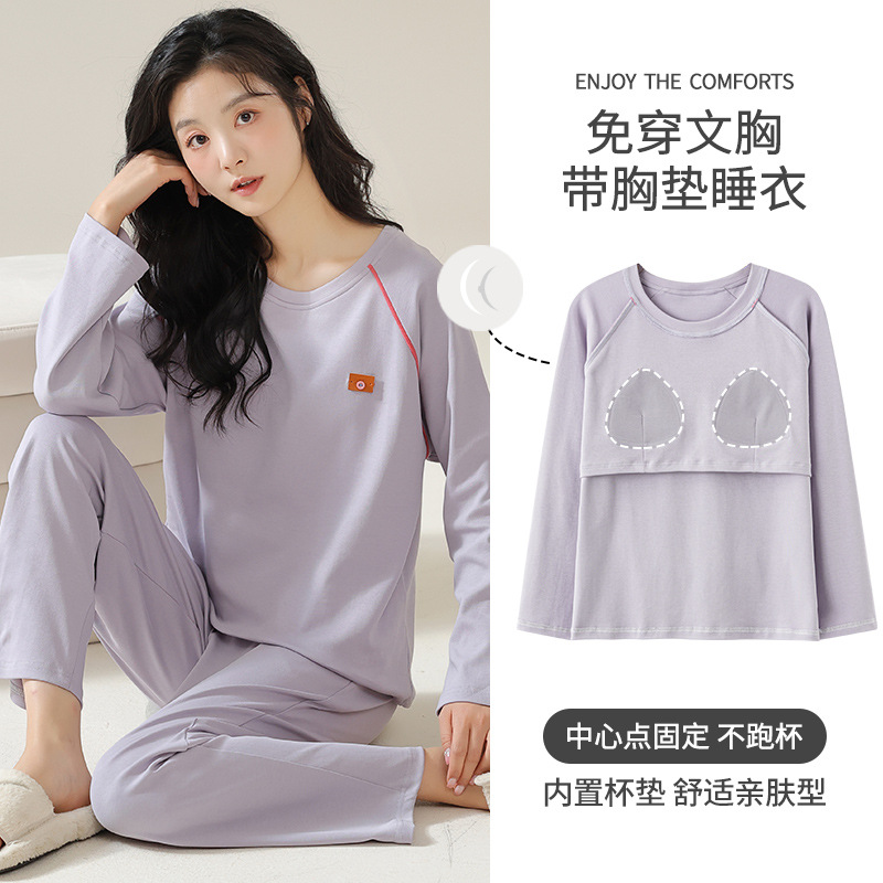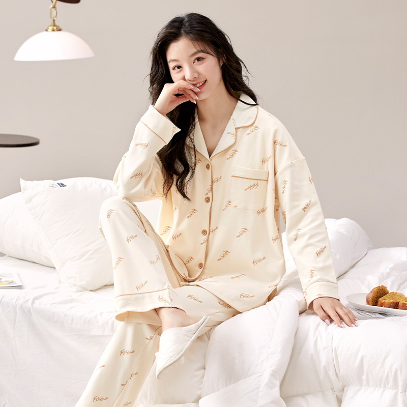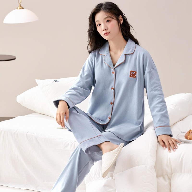 순면 잠옷 여성의 봄과 여름 긴 소매 2024 새로운 여성의 간단한 플러스 사이즈 가을과 겨울 홈 의류 세트 외부 착용 가능스토어 가기