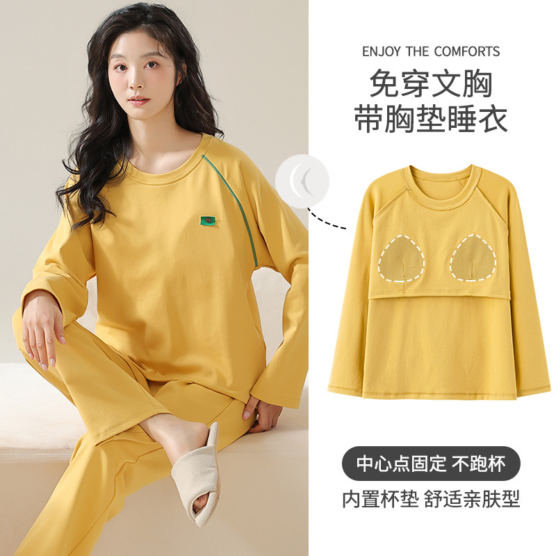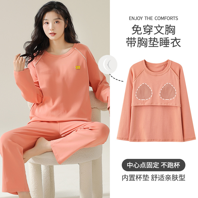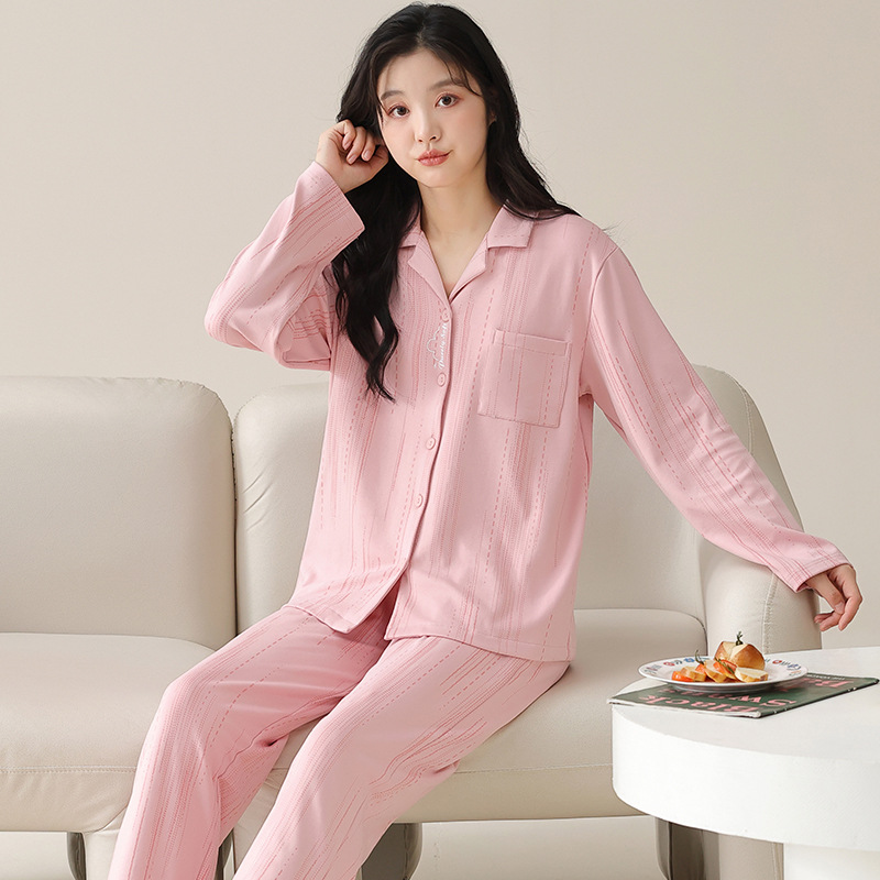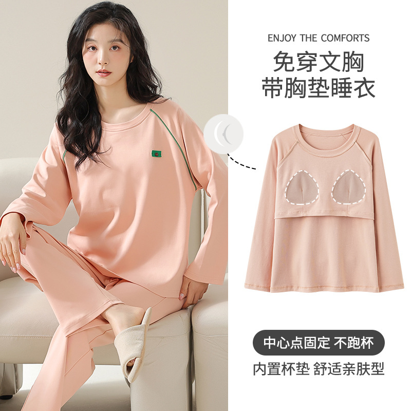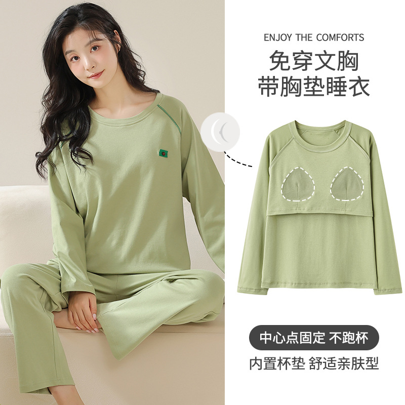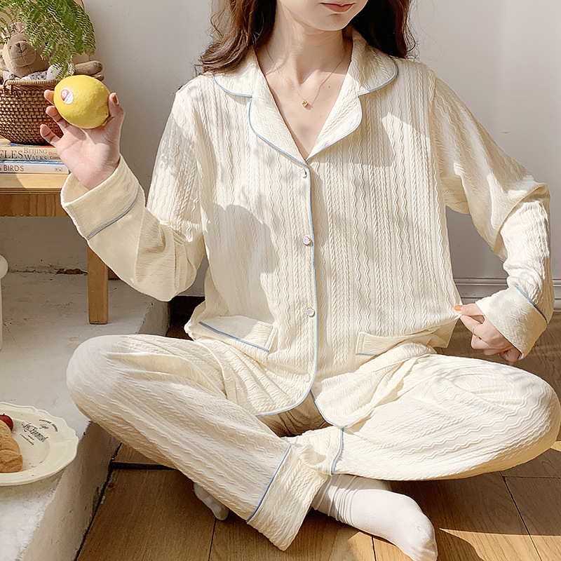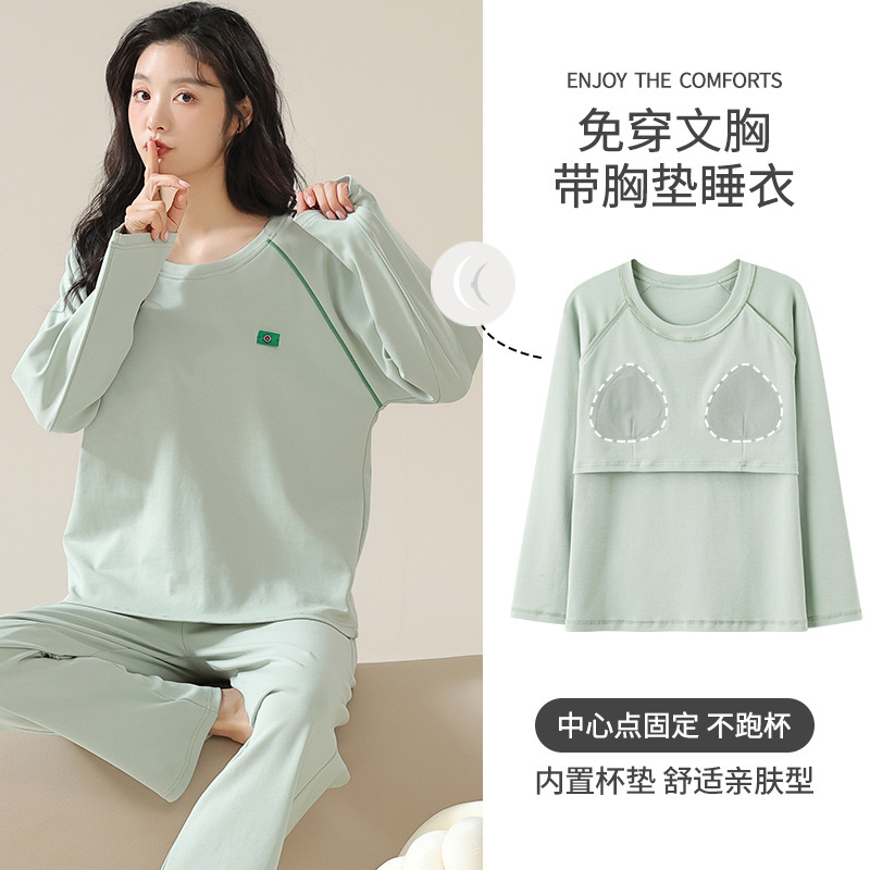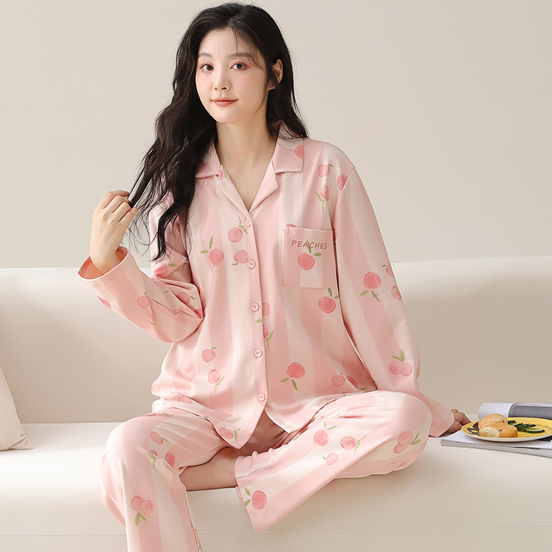 순면 잠옷 여성의 봄과 여름 긴 소매 2024 새로운 여성의 간단한 플러스 사이즈 가을과 겨울 홈 의류 세트 외부 착용 가능스토어 가기