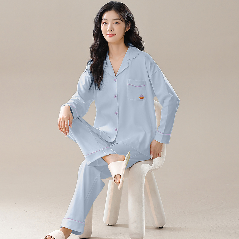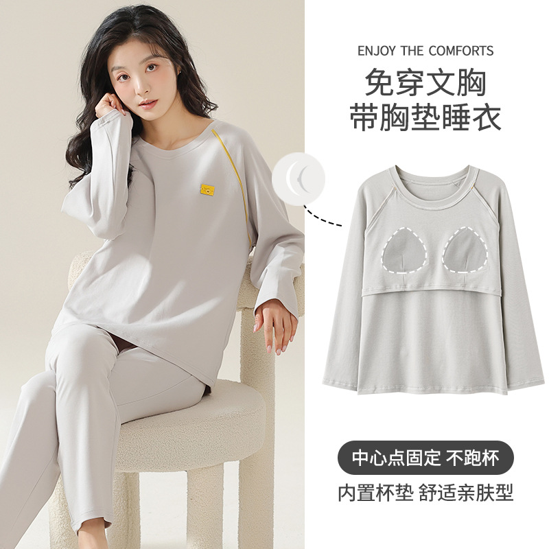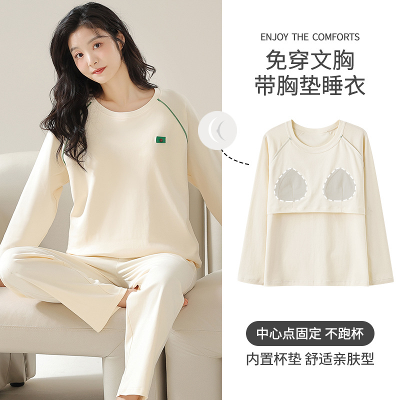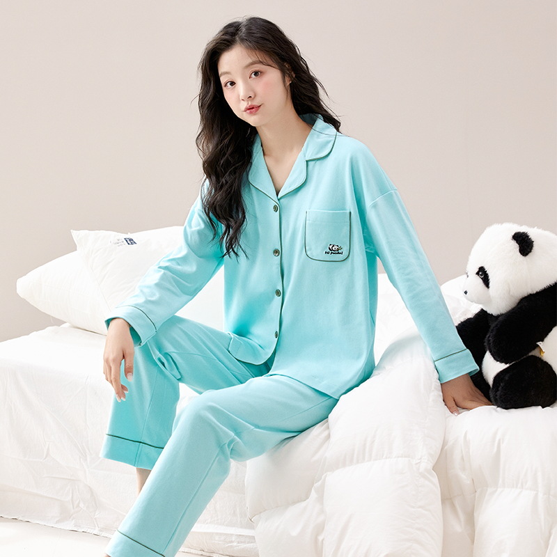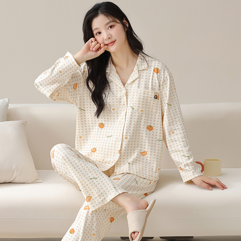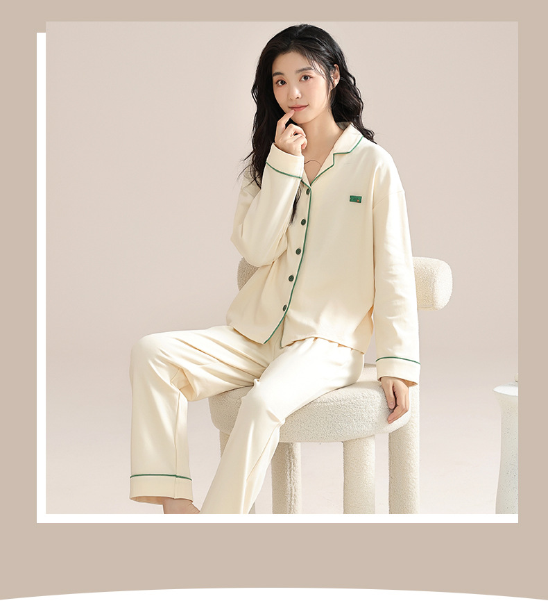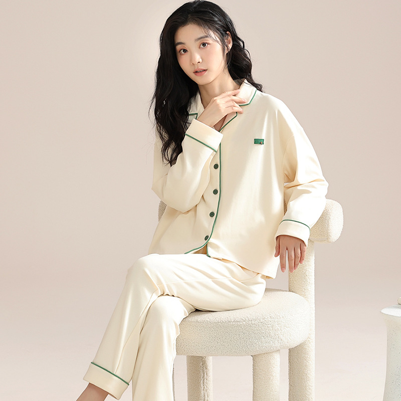 순면 잠옷 여성의 봄과 여름 긴 소매 2024 새로운 여성의 간단한 플러스 사이즈 가을과 겨울 홈 의류 세트 외부 착용 가능스토어 가기