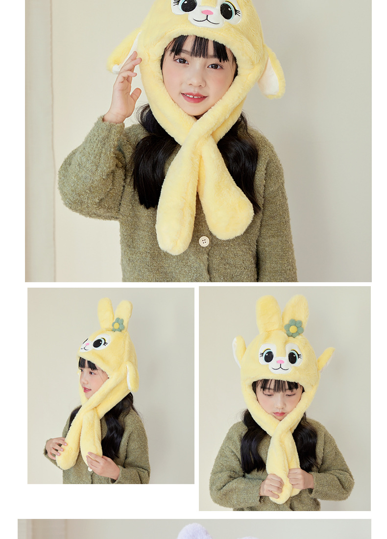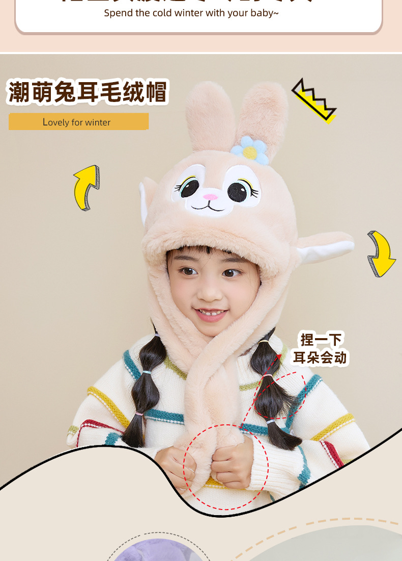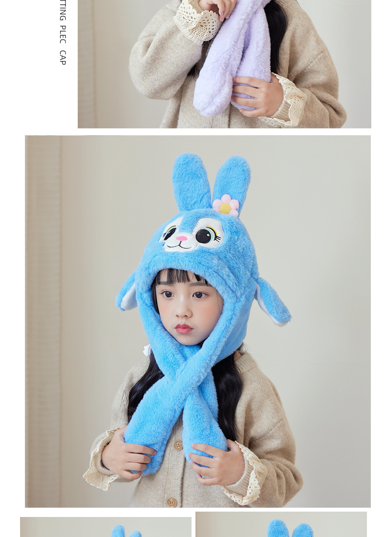 2160 어린이 모자 귀 이동 만화 토끼 스카프 통합 모자 남성과 여성 아기 겨울 귀 보호 풀오버 모자스토어 가기