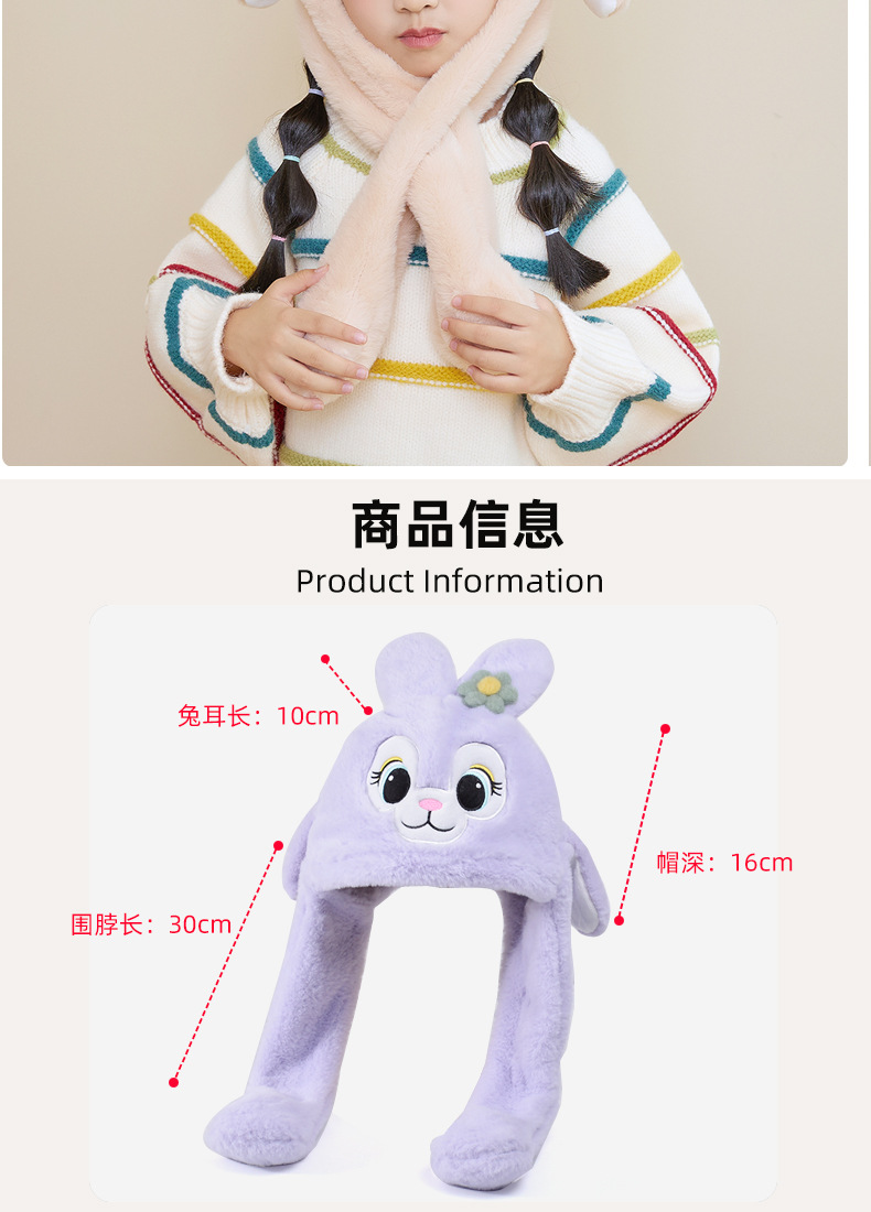 2160 어린이 모자 귀 이동 만화 토끼 스카프 통합 모자 남성과 여성 아기 겨울 귀 보호 풀오버 모자