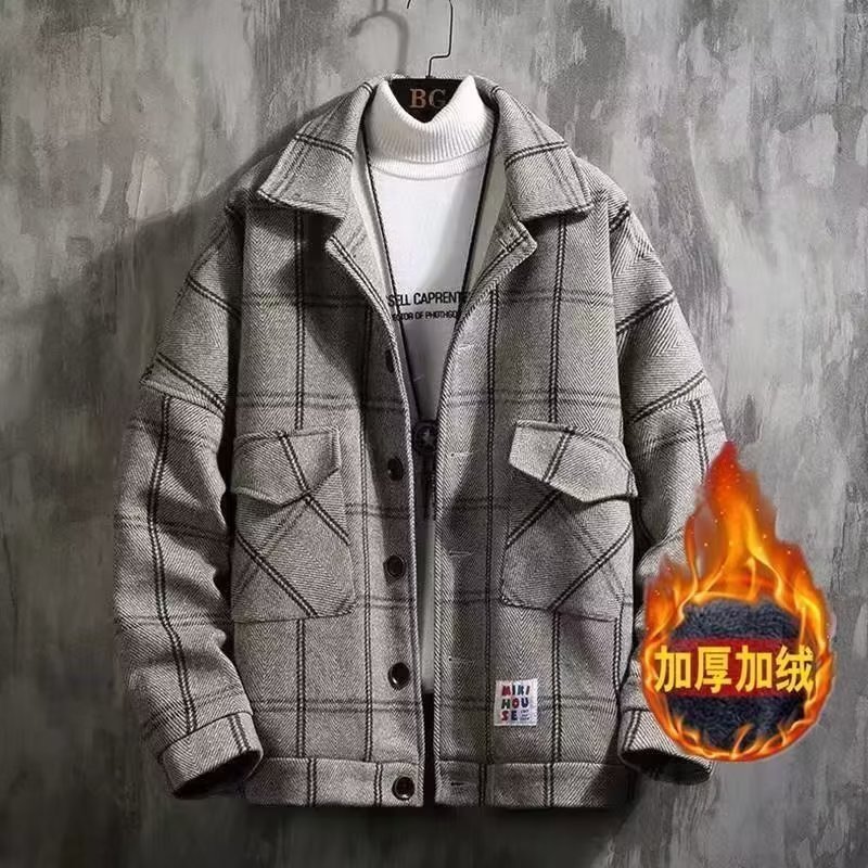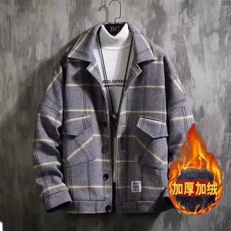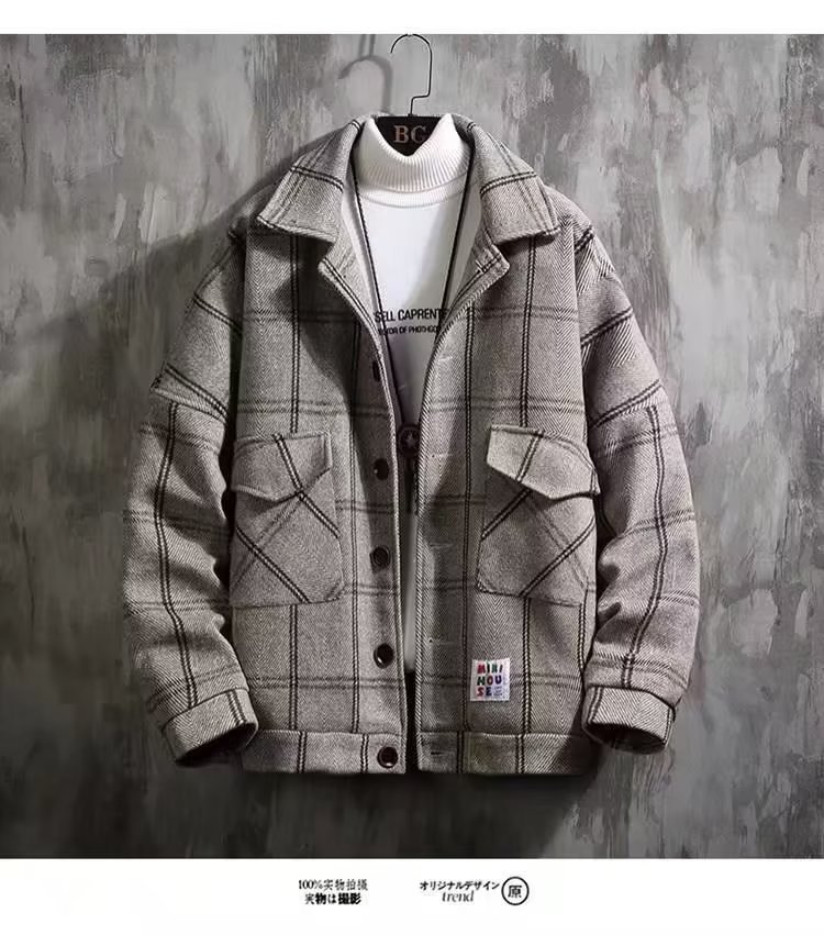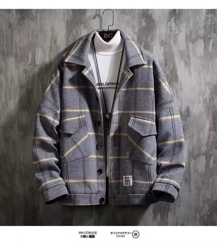 모직 코트 남성용 2023 봄과 가을 새로운 느슨한 한국 유행 짧은 유행 브랜드 모직 코트 남성용 윈드 브레이커스토어 가기