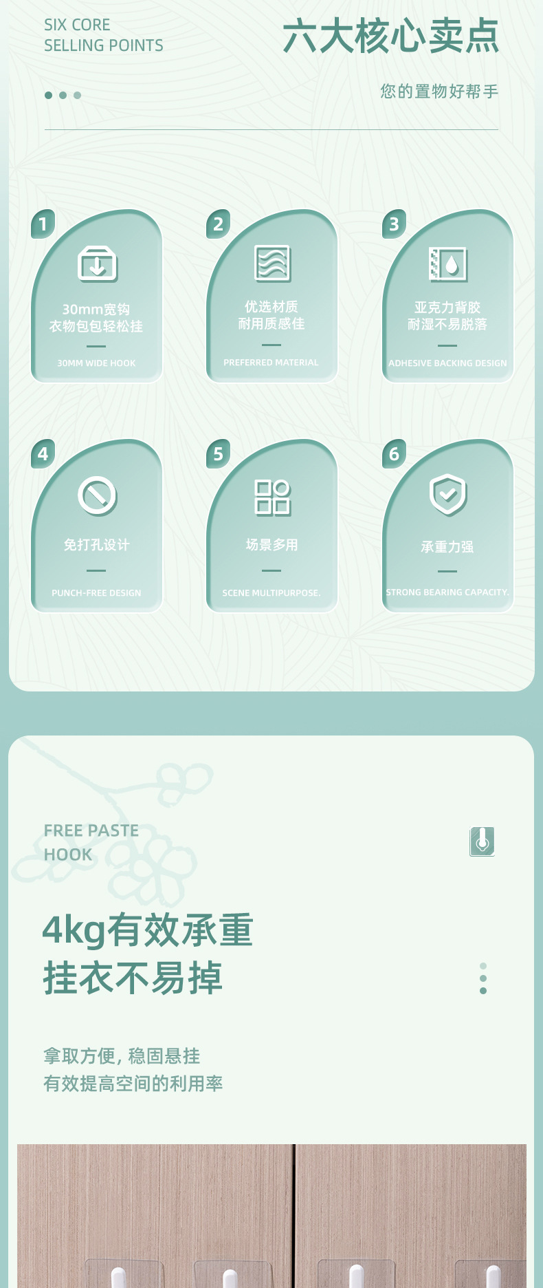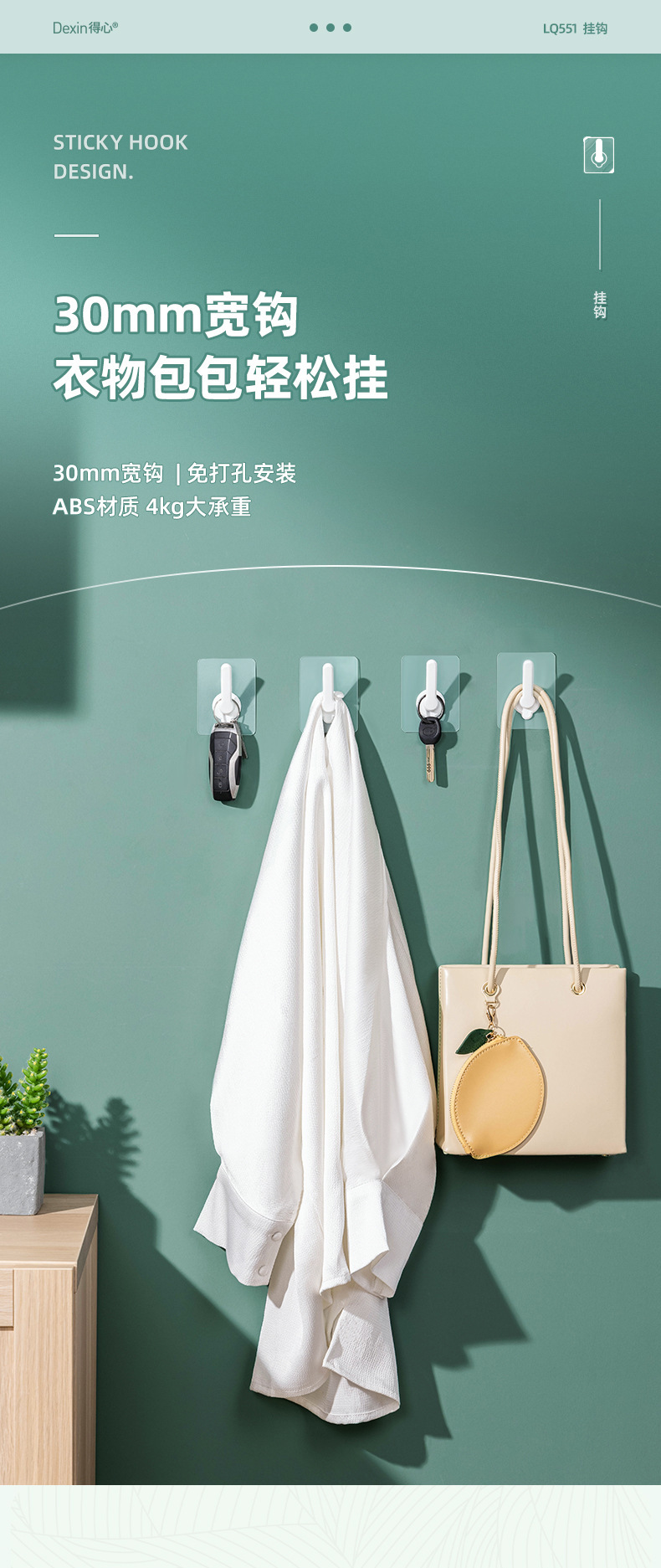 델리 LQ551 후크는 4kg 펀치없는 가정용 강한 비스코스 벽걸이 의류 및 모자 후크 도매