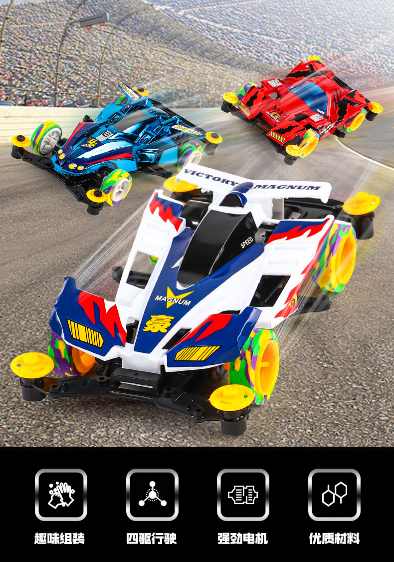 조립 된 4 륜 구동 전기 조립 레이싱 카 플레이 가능한 실습 어린이 장난감 야시장 포장 도매