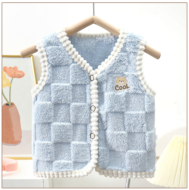 새로운 어린이 기모 조끼 남아 따뜻한 조끼 부드러운 내부 착용 가을과 겨울 여아 어깨 카디건 조끼 겉옷