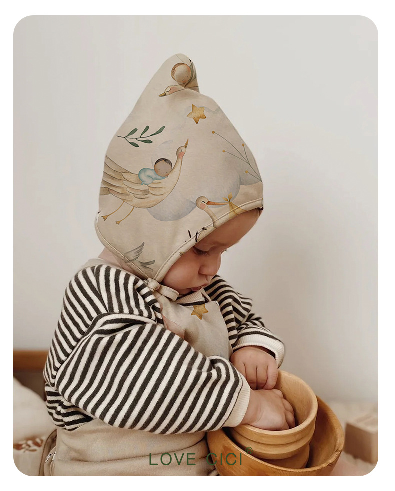 Aixisi 니트 타이 로프 발가락 모자 가을과 겨울 아기 귀 보호 모자 봄과 가을 신생아 유아 태아 모자