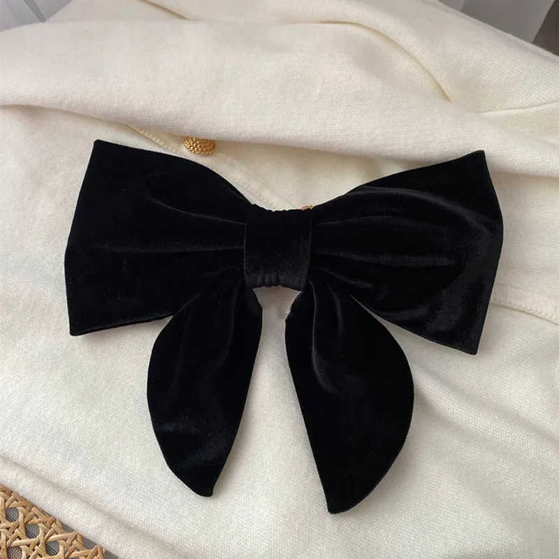 새로운 한국 스타일 올매치 블랙 보우 머리핀 데일리 스타일 수입 벨벳 머리핀 대형 헤어 모자