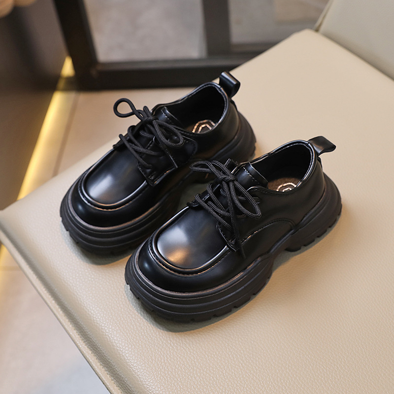 여아 레트로 스퀘어 토 달콤한 멋진 작은 가죽 신발 2023 봄과 가을 새로운 스타일 머핀 어린이 영국 레이스 업 신발 로퍼
