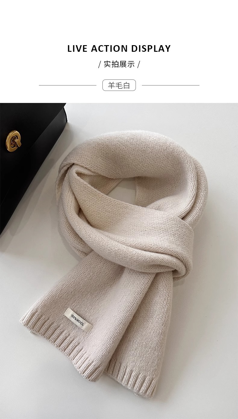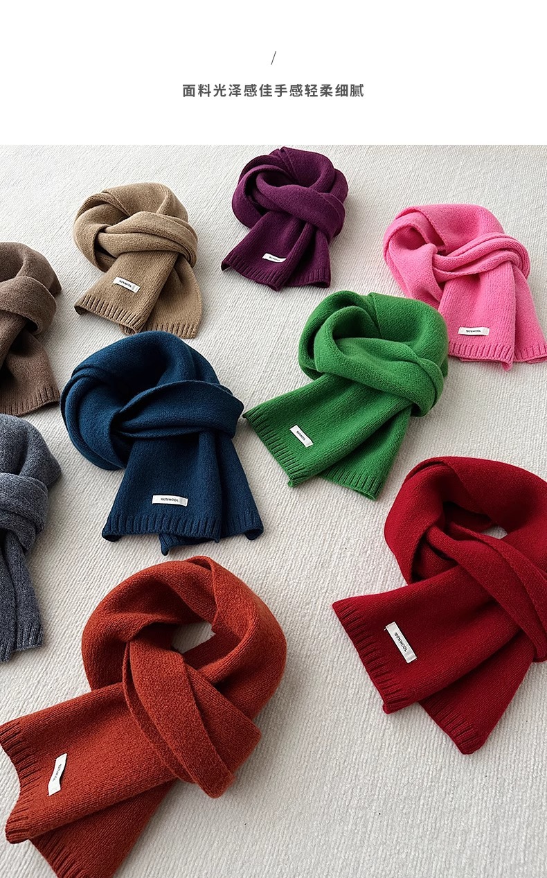 엄선된 호주산 순양모 100% 스카프, 새로운 단색 디자인, 남녀공용 겨울 보온 니트 스카프스토어 가기