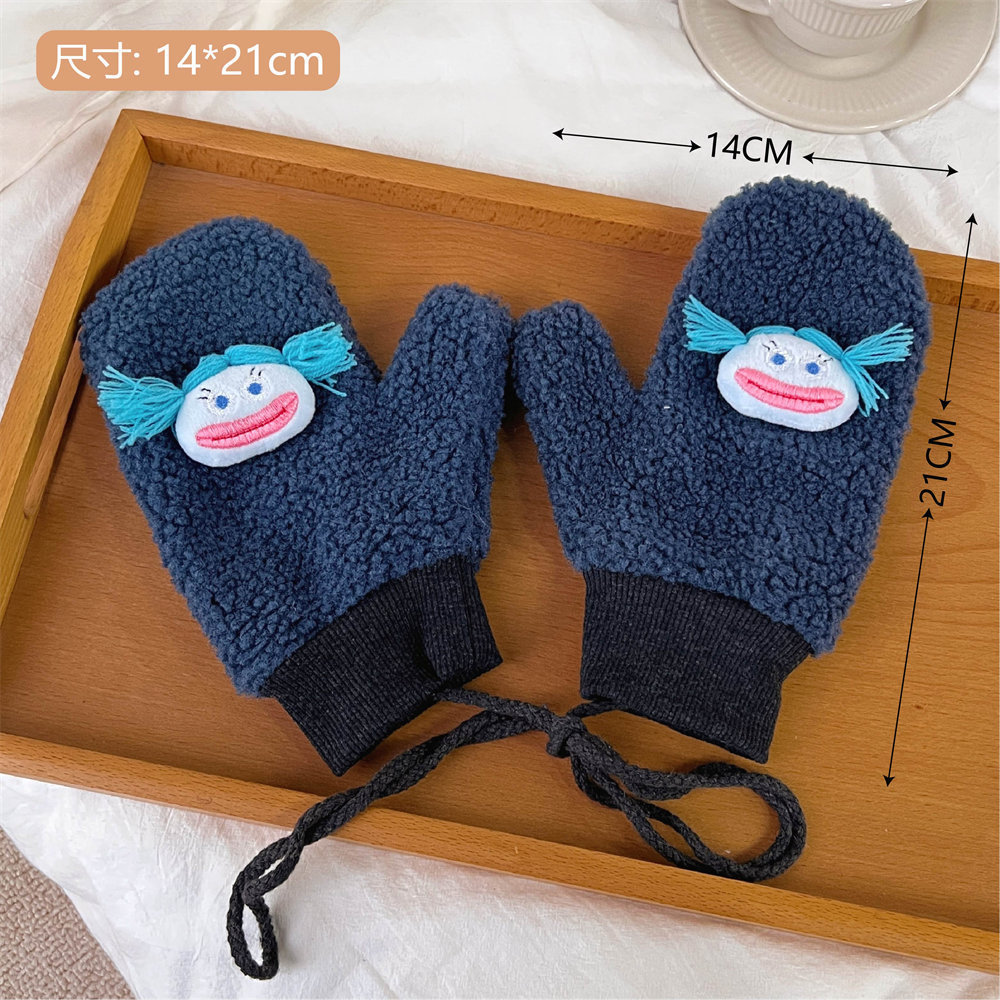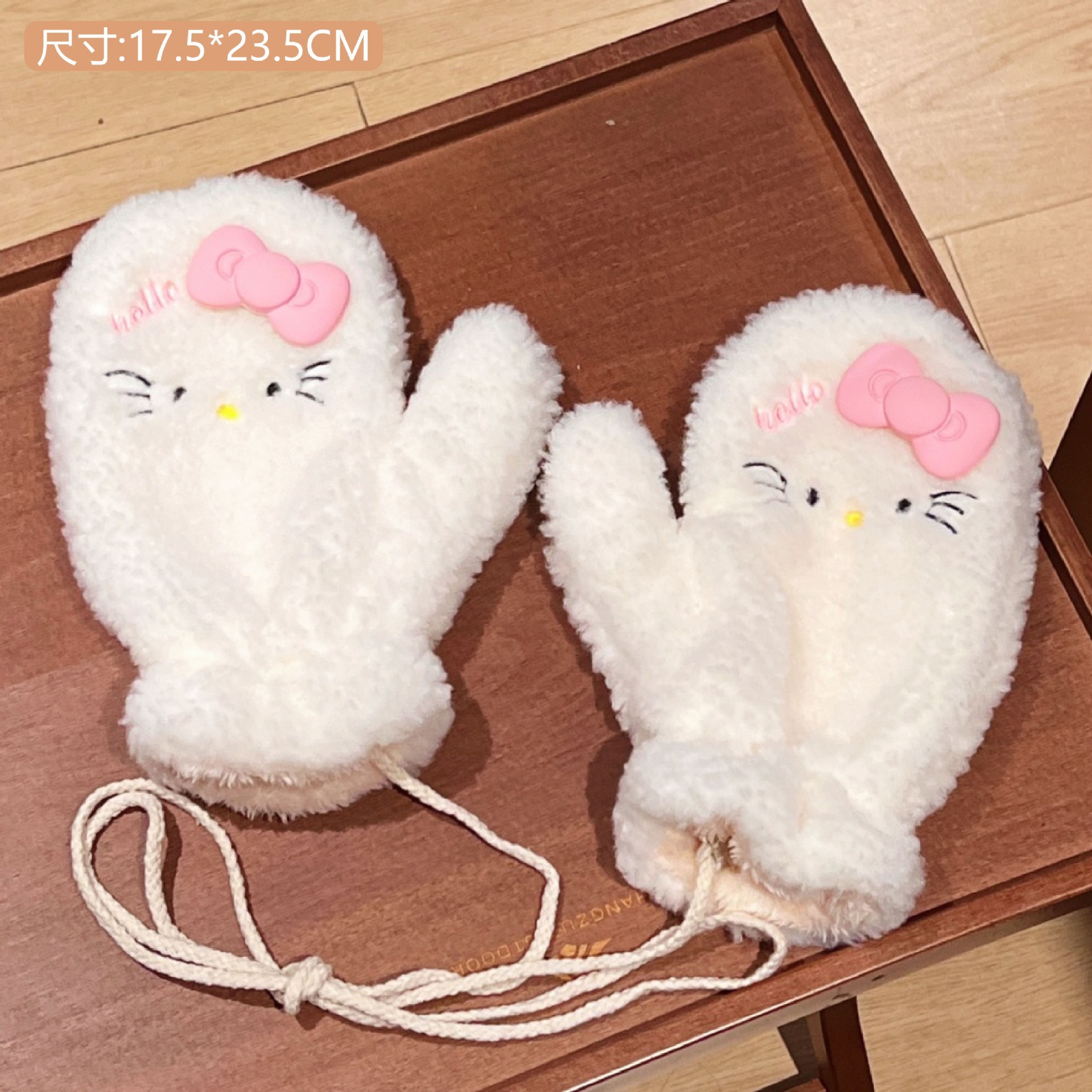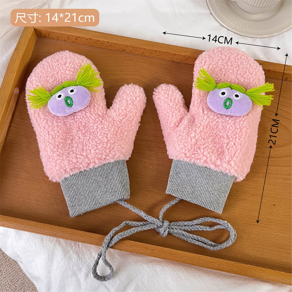 봄과 여름용 플러시 두꺼운 격자무늬 장갑 소녀용 방풍 방한 장갑 목걸이형 따뜻한 자전거 장갑