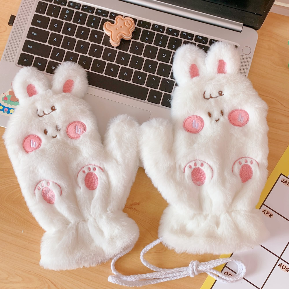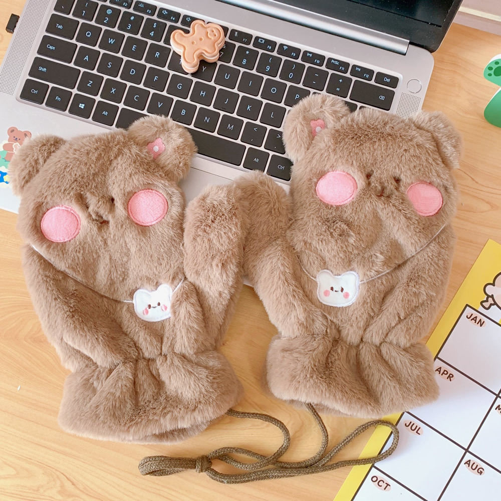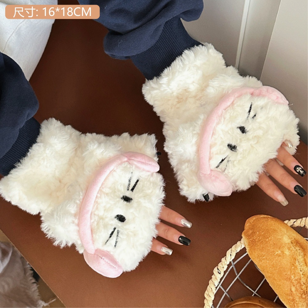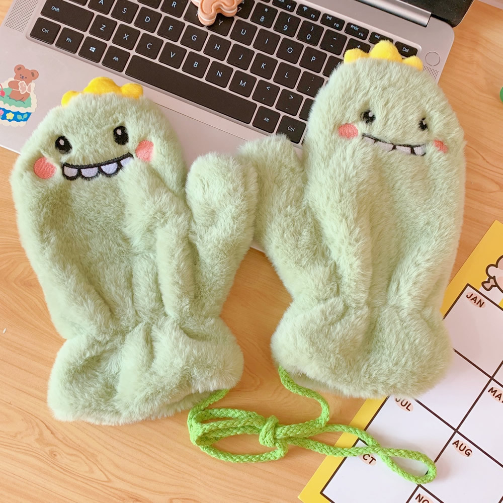 봄과 여름용 플러시 두꺼운 격자무늬 장갑 소녀용 방풍 방한 장갑 목걸이형 따뜻한 자전거 장갑