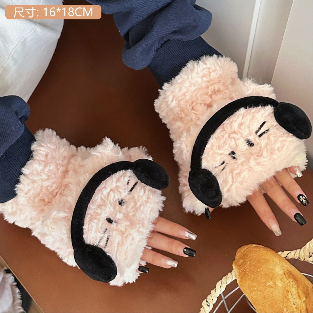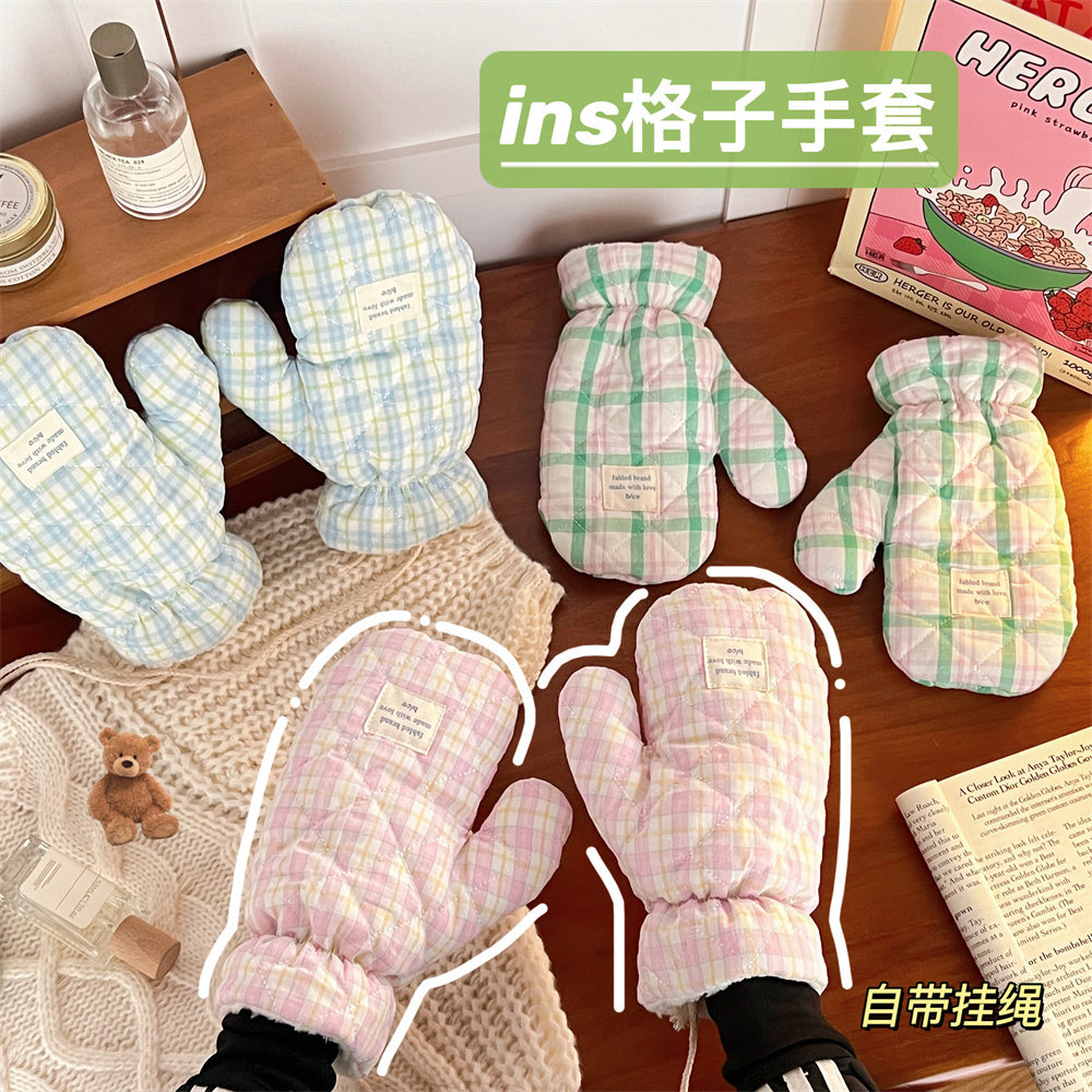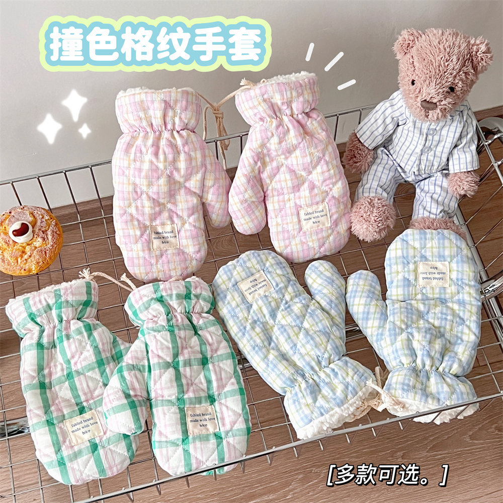 봄과 여름용 플러시 두꺼운 격자무늬 장갑 소녀용 방풍 방한 장갑 목걸이형 따뜻한 자전거 장갑스토어 가기