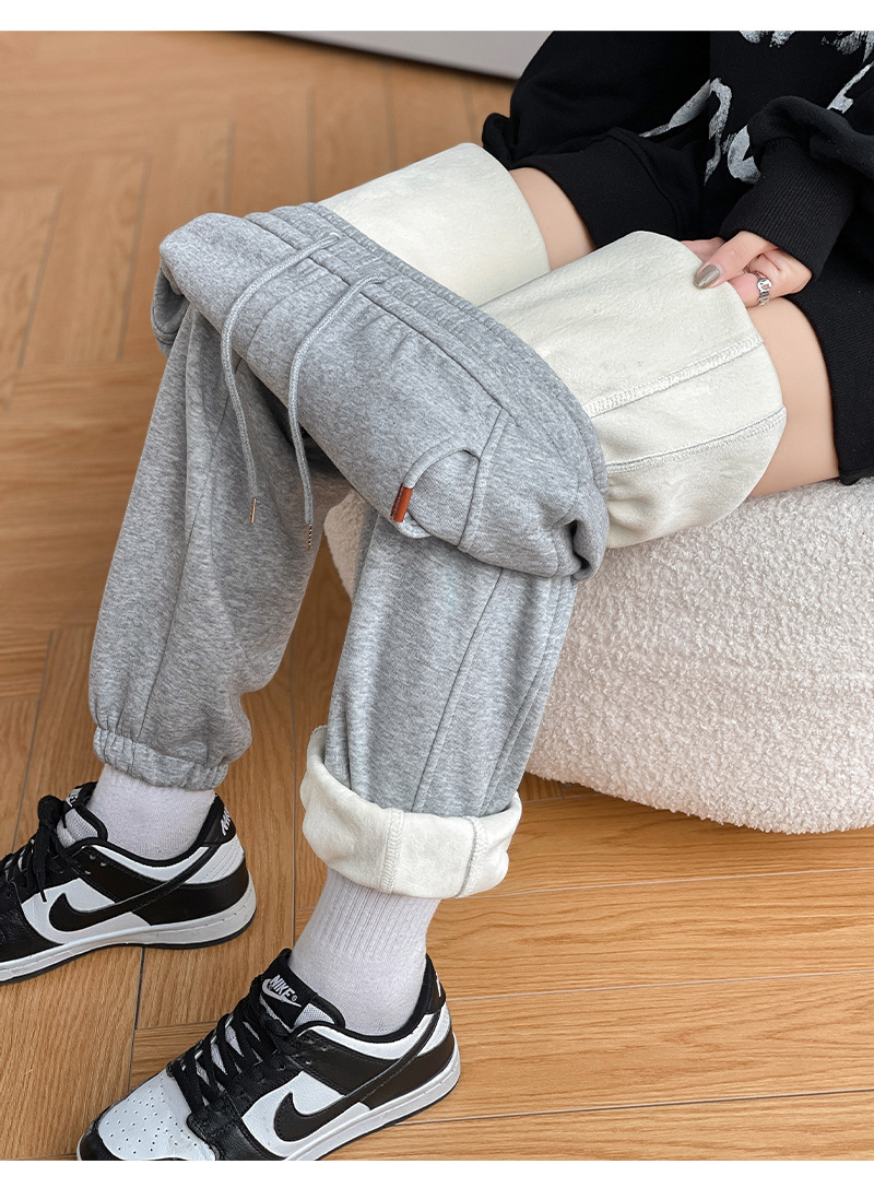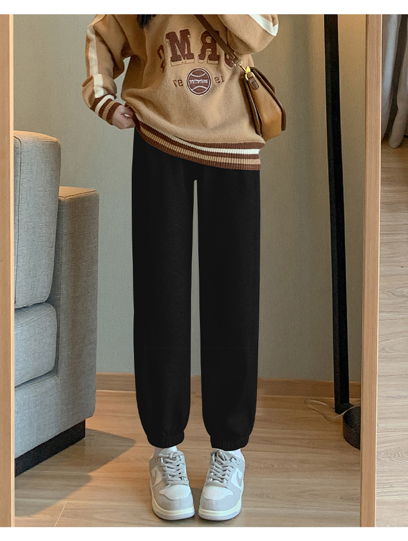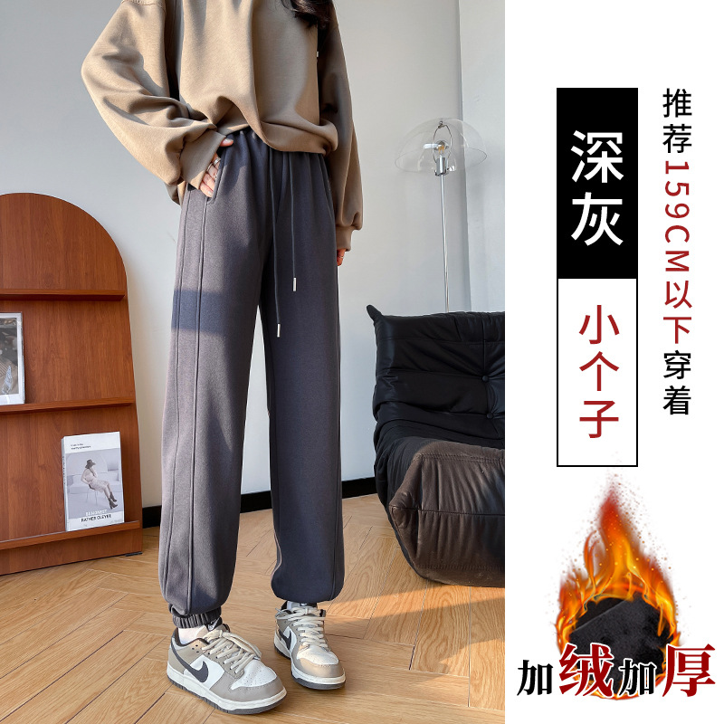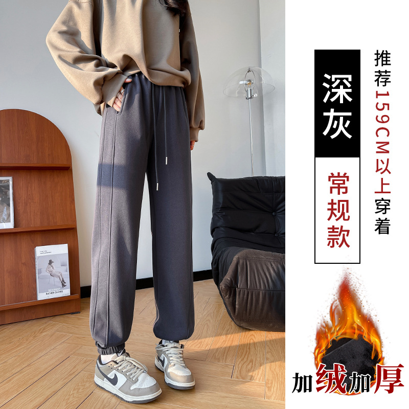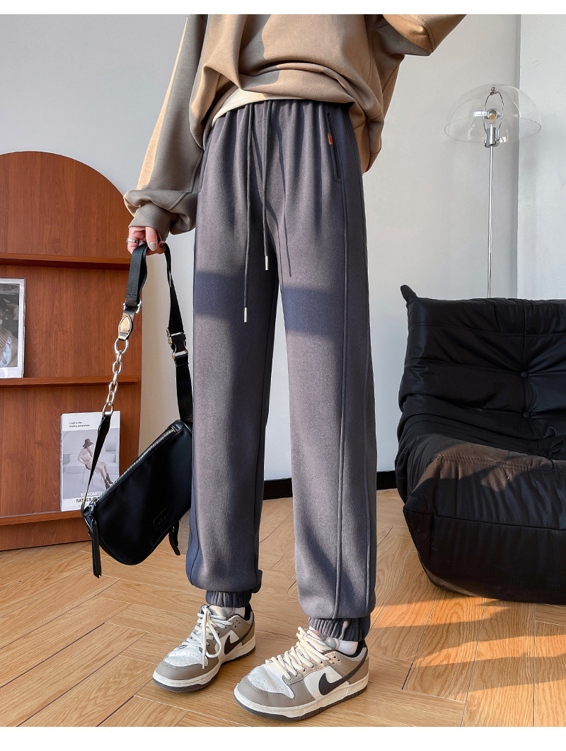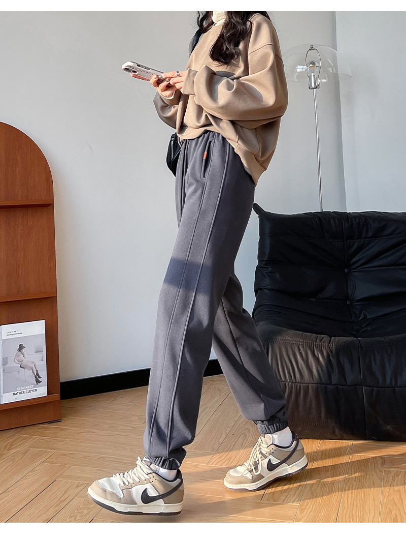 기모 스포츠 바지 여성의 가을과 겨울 하이 웨이스트 좁은 캐주얼 바지 느슨한 드레이핑 스트레이트 스티치 랜턴 바지