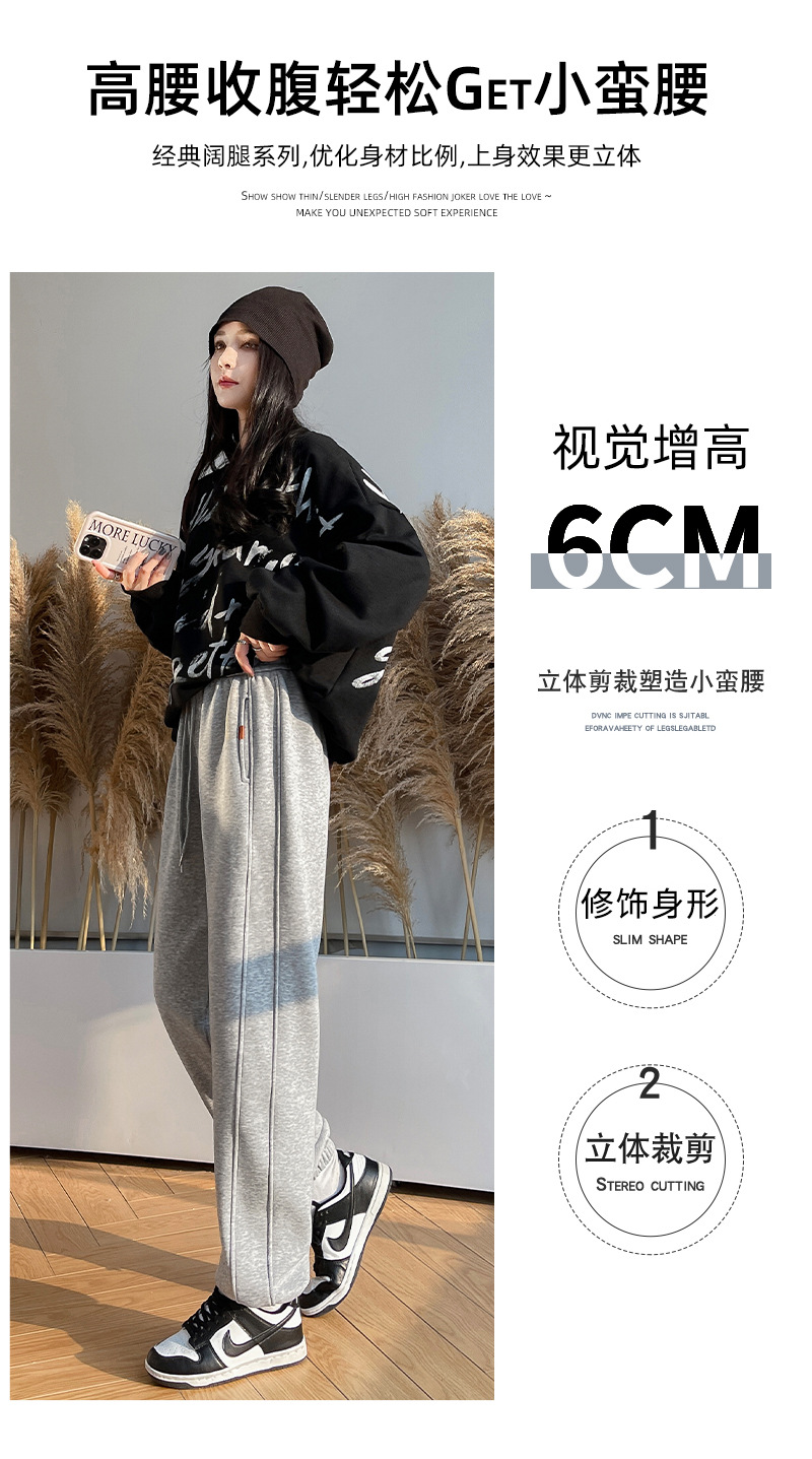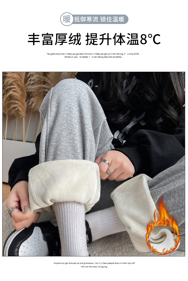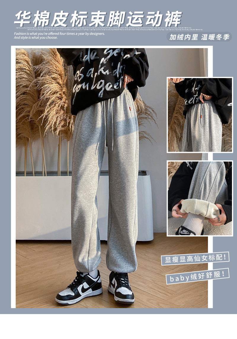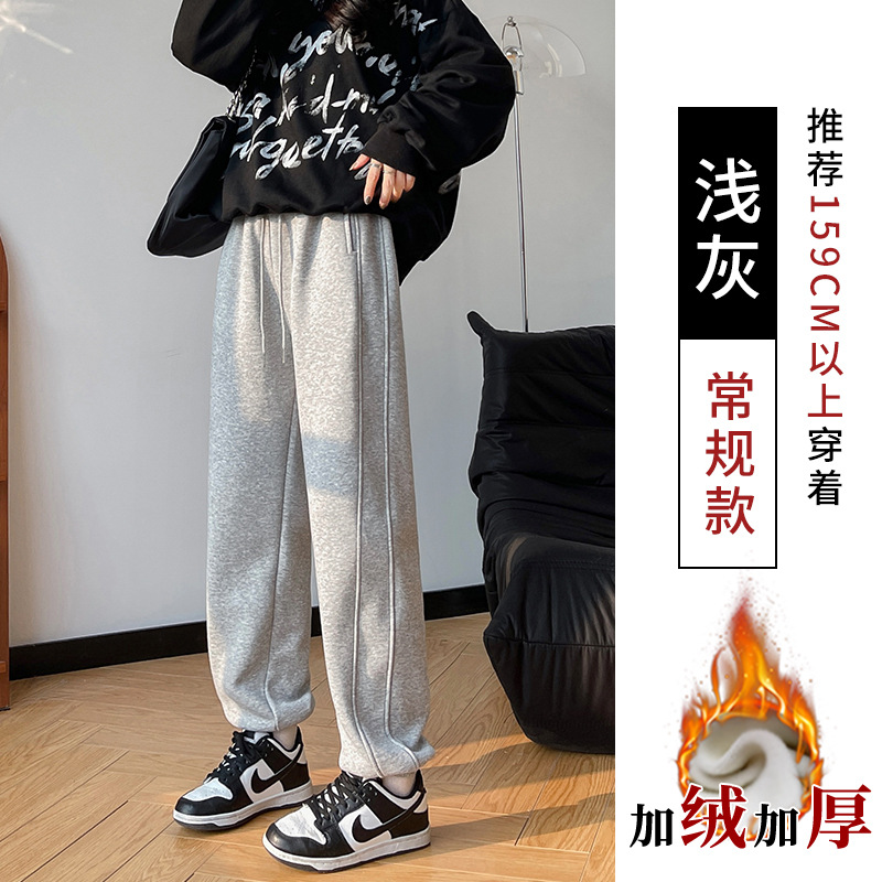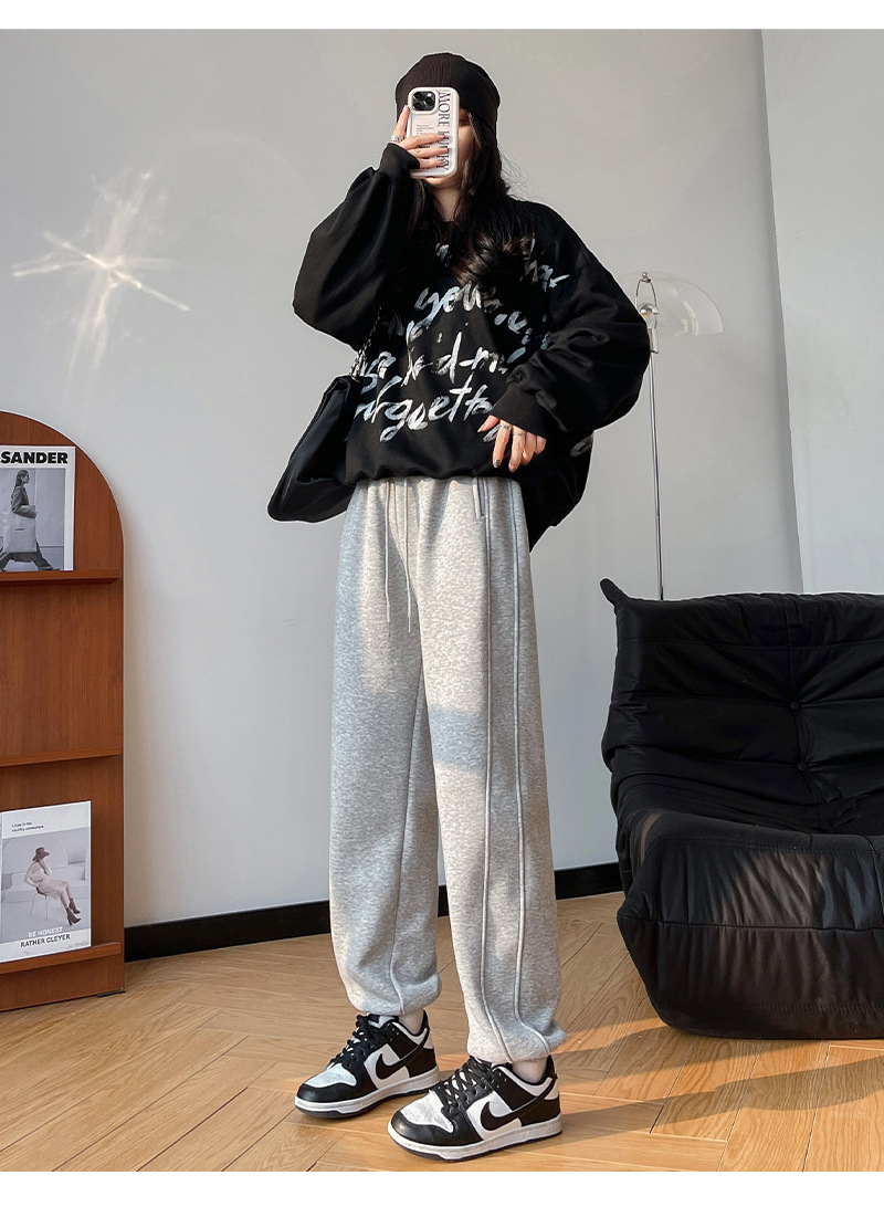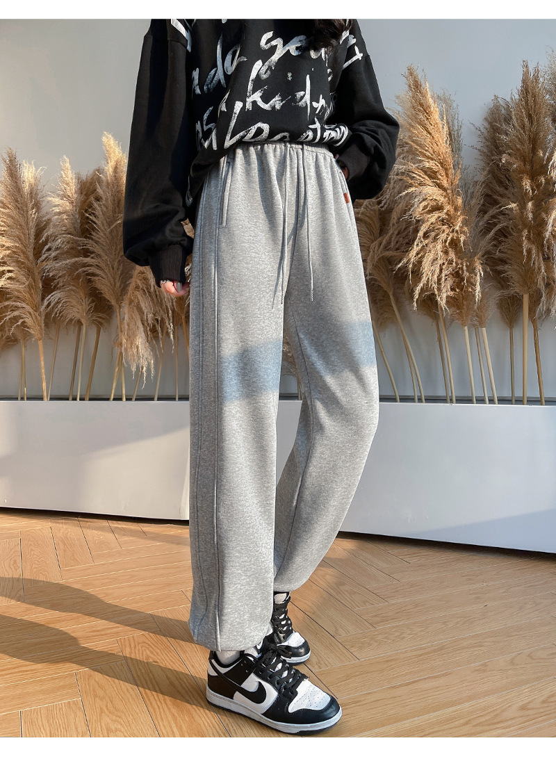 기모 스포츠 바지 여성의 가을과 겨울 하이 웨이스트 좁은 캐주얼 바지 느슨한 드레이핑 스트레이트 스티치 랜턴 바지스토어 가기