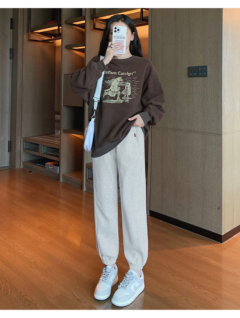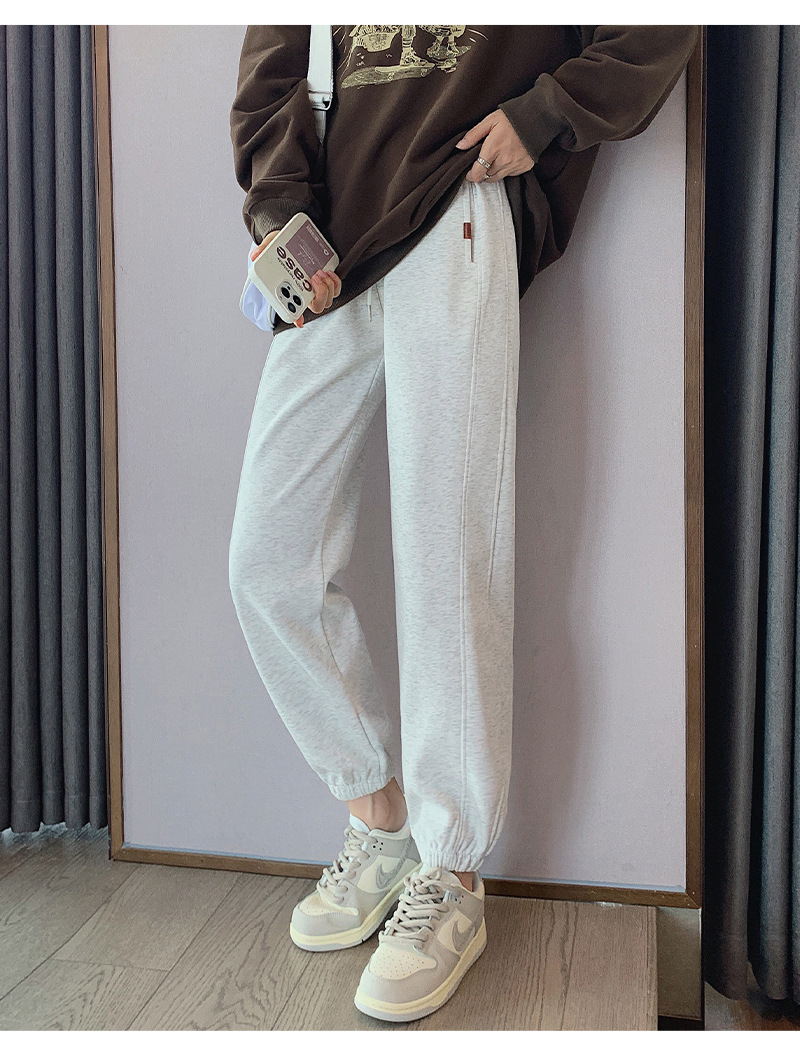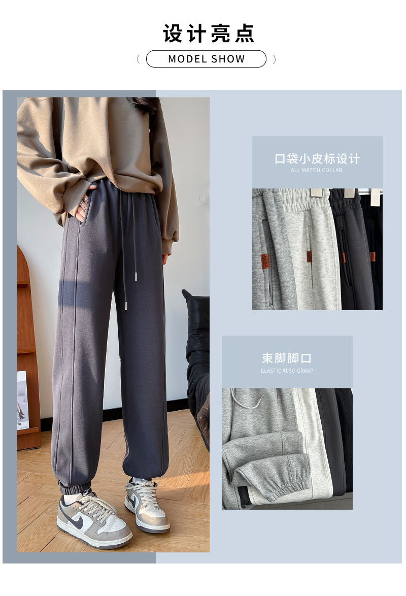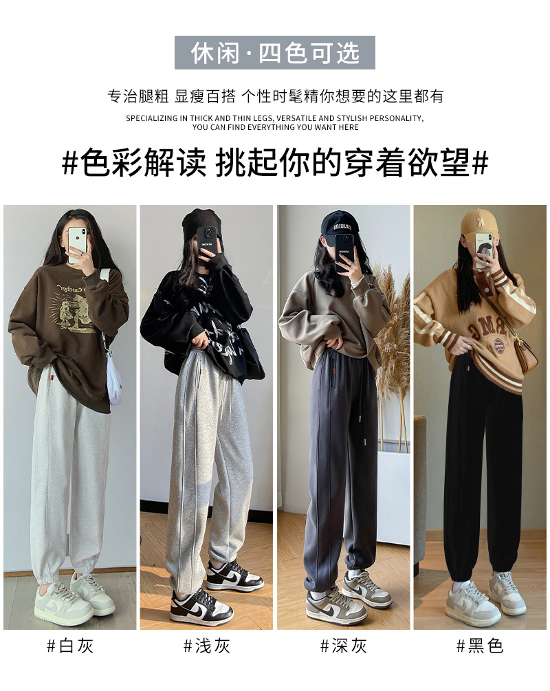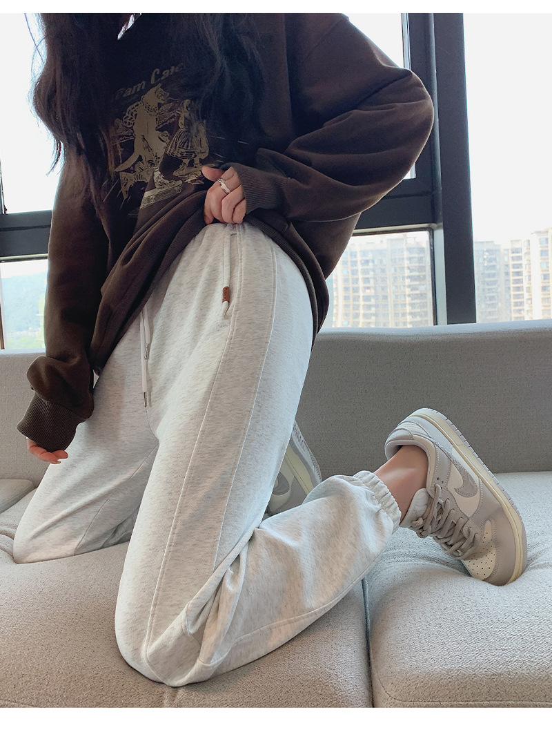 기모 스포츠 바지 여성의 가을과 겨울 하이 웨이스트 좁은 캐주얼 바지 느슨한 드레이핑 스트레이트 스티치 랜턴 바지스토어 가기