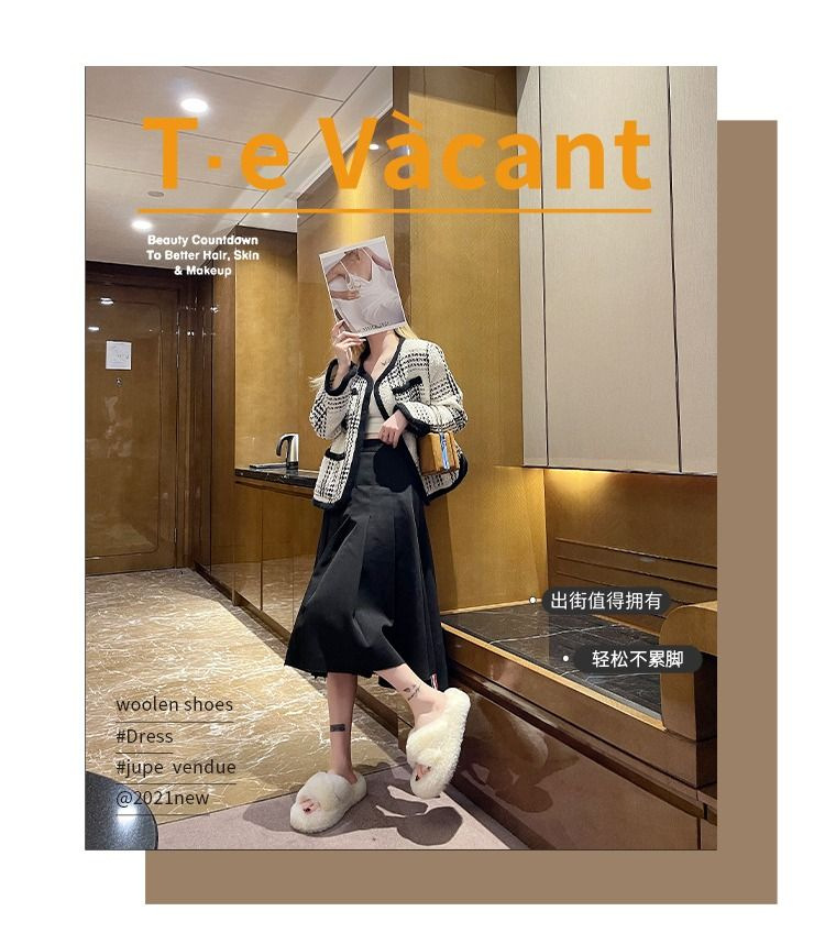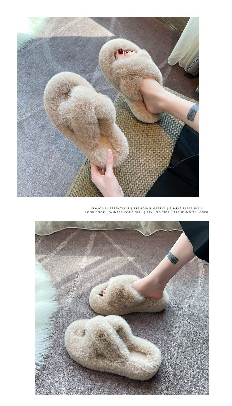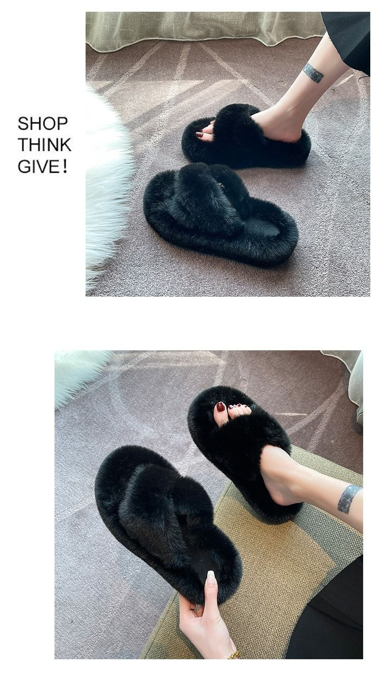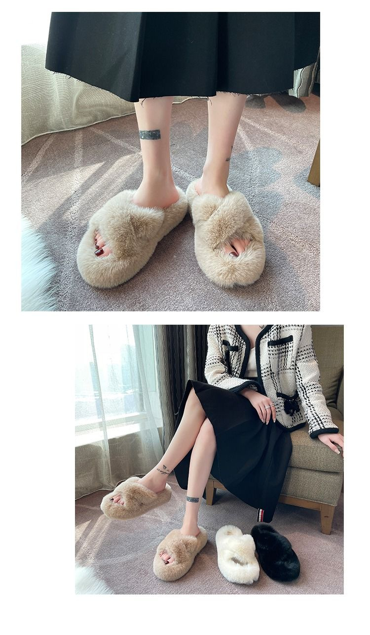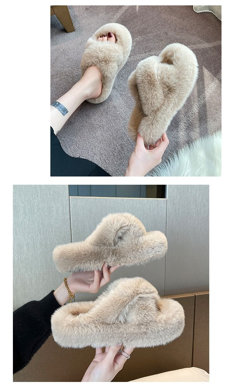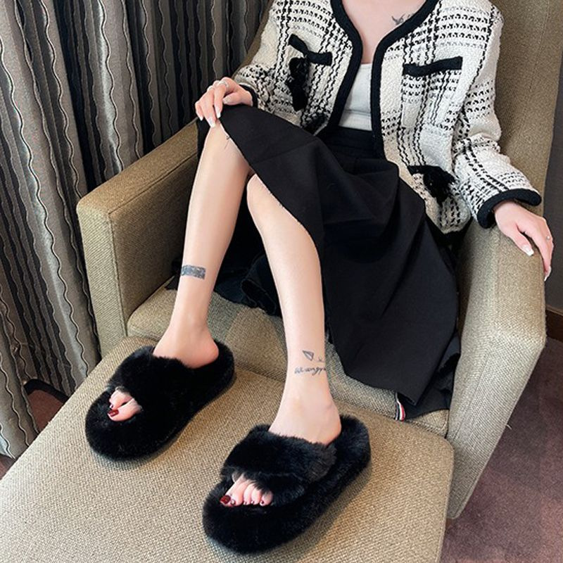 2024 가을 겨울 신상 여성용 털 안감 슬리퍼, 인터넷 인기 두꺼운 밑창 털 슬리퍼, 사무실 및 가정용 여성용 슬리퍼