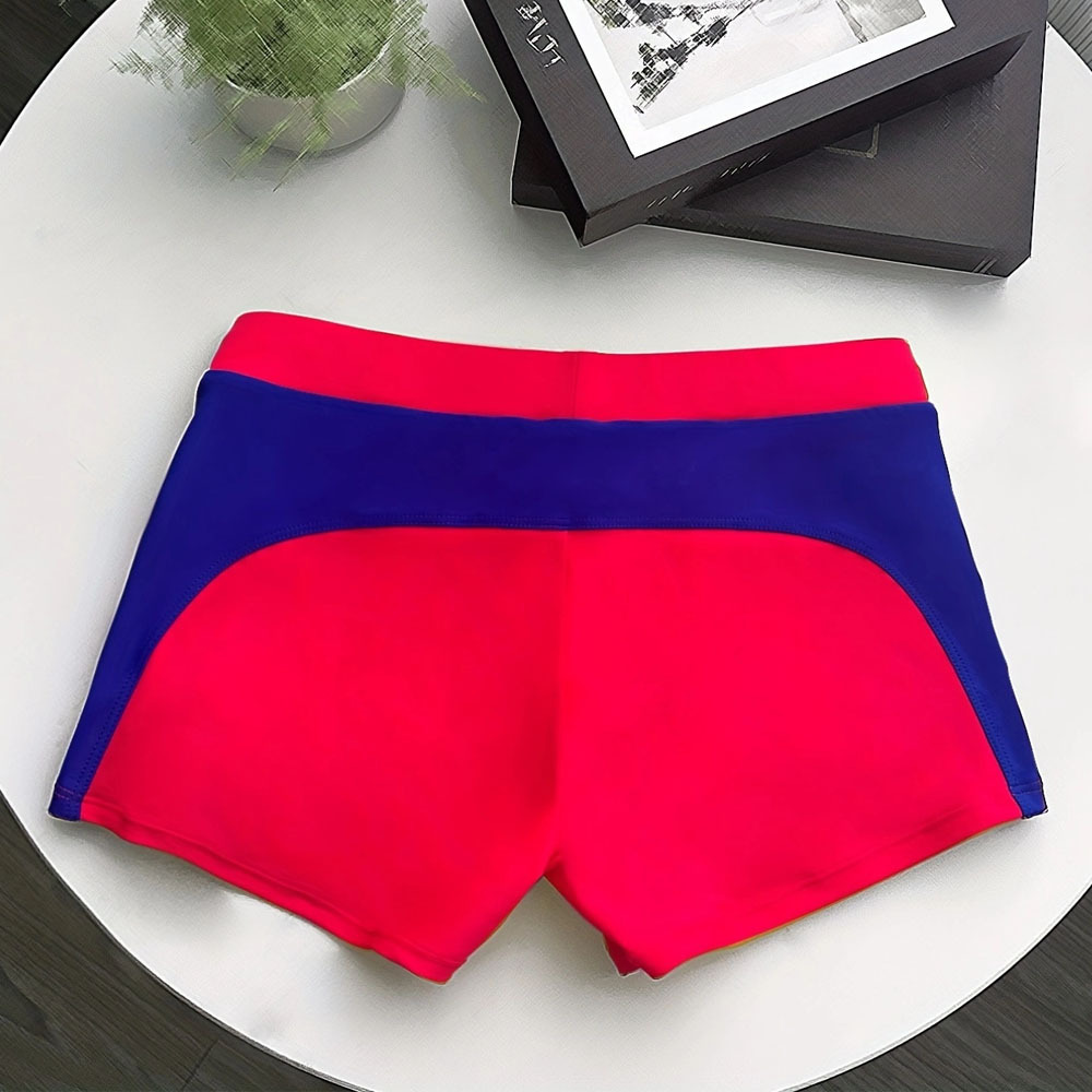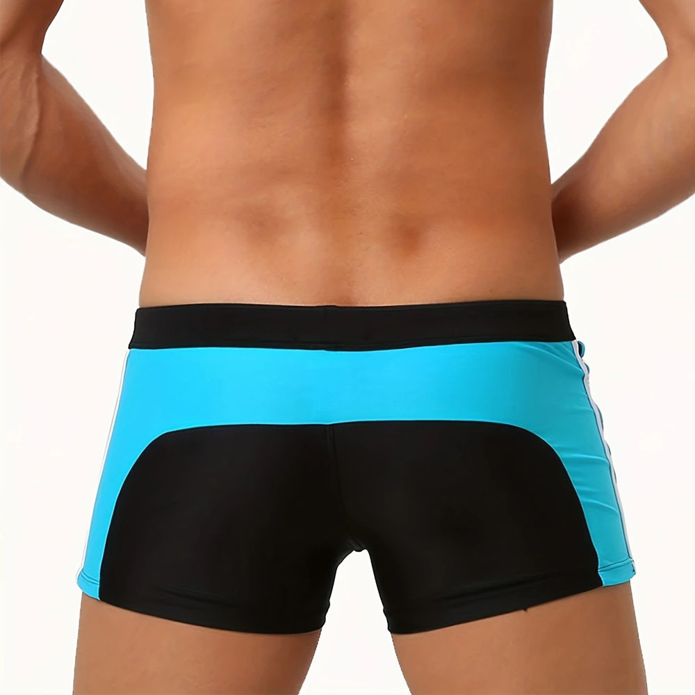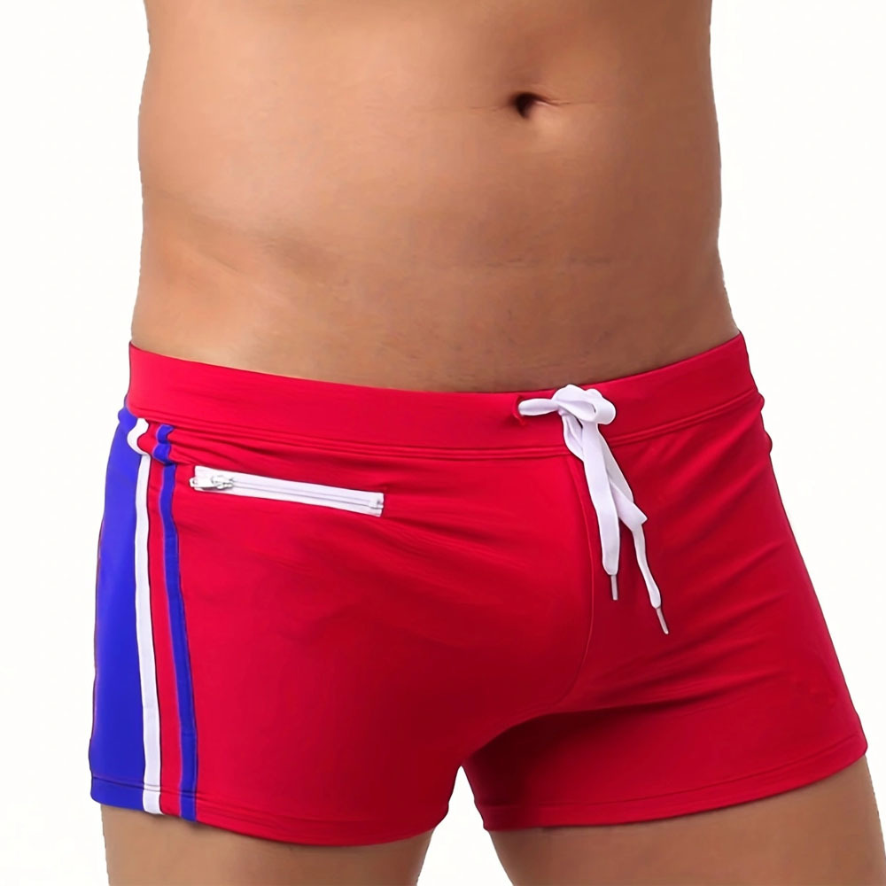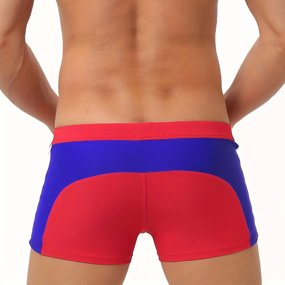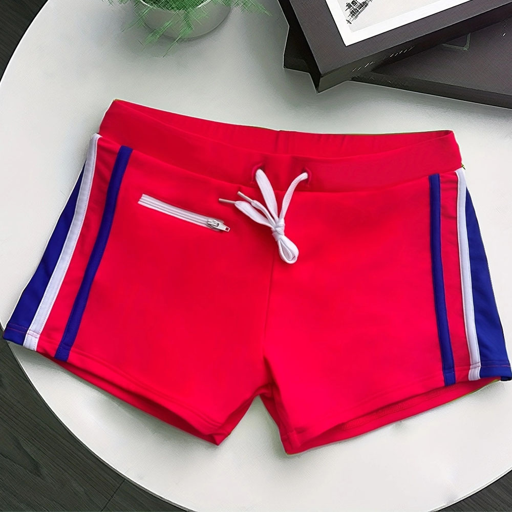 2024 크로스 국경 대외 무역 새로운 남자의 컬러 매칭 지퍼 테더 슬림 복서 반바지 수영 해변 공장 재고