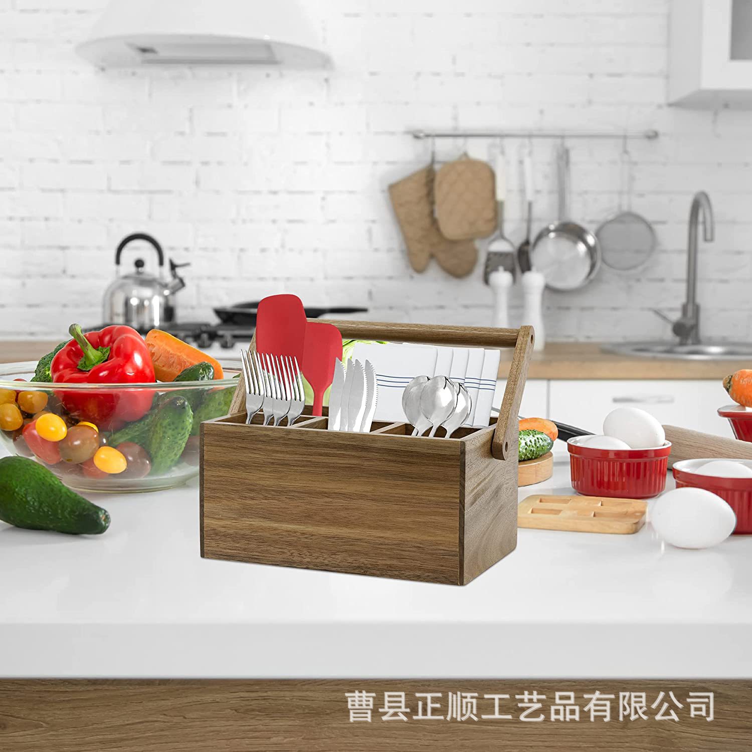 서양 식기 나무 칼 및 포크 보관함 조미료를위한 가정용 휴대용 식기 보관 랙
