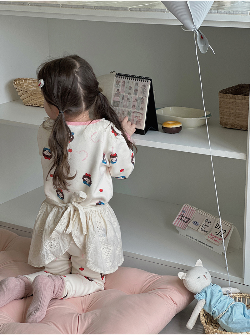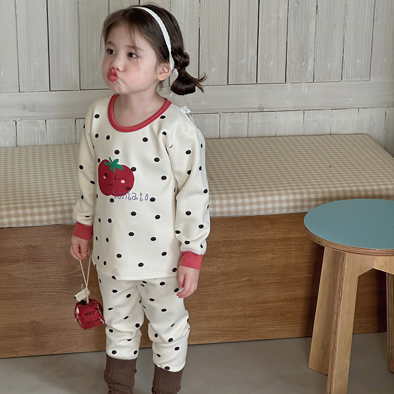 안메이야 어린이 벚꽃 벨벳 따뜻한 세트 우유 실크 목 한국 스타일 만화 승무원 목 홈 옷 어린이 잠옷