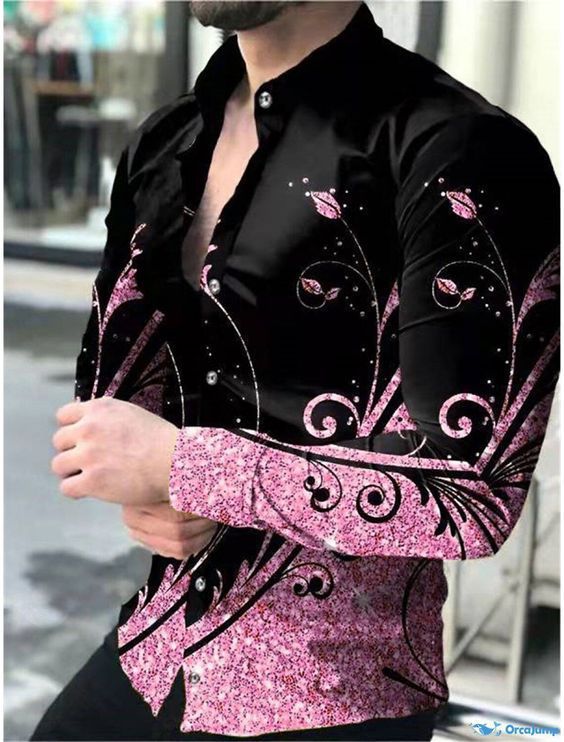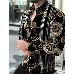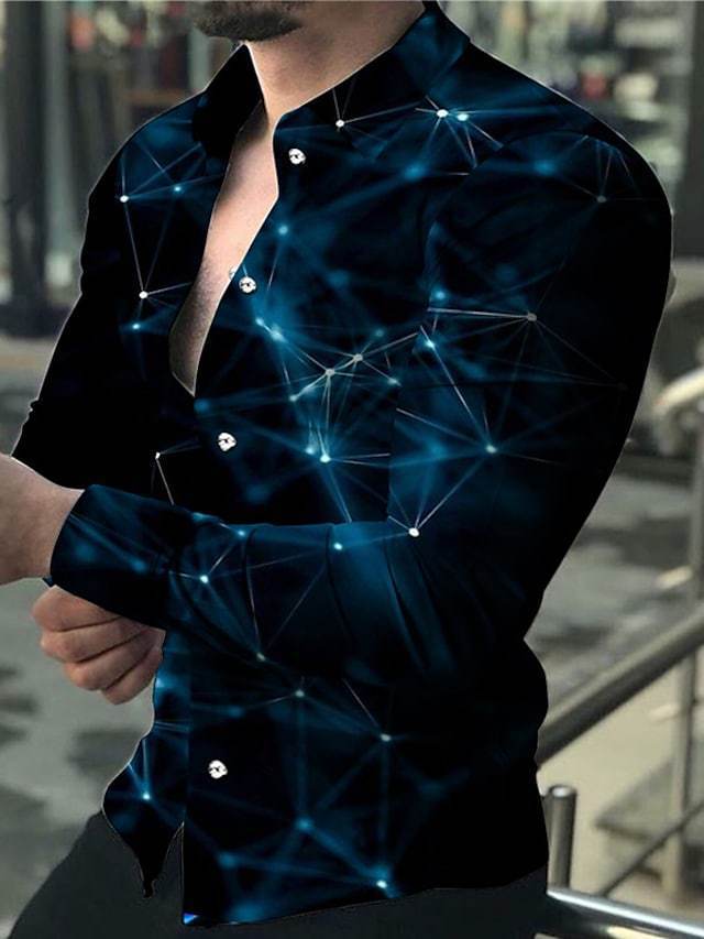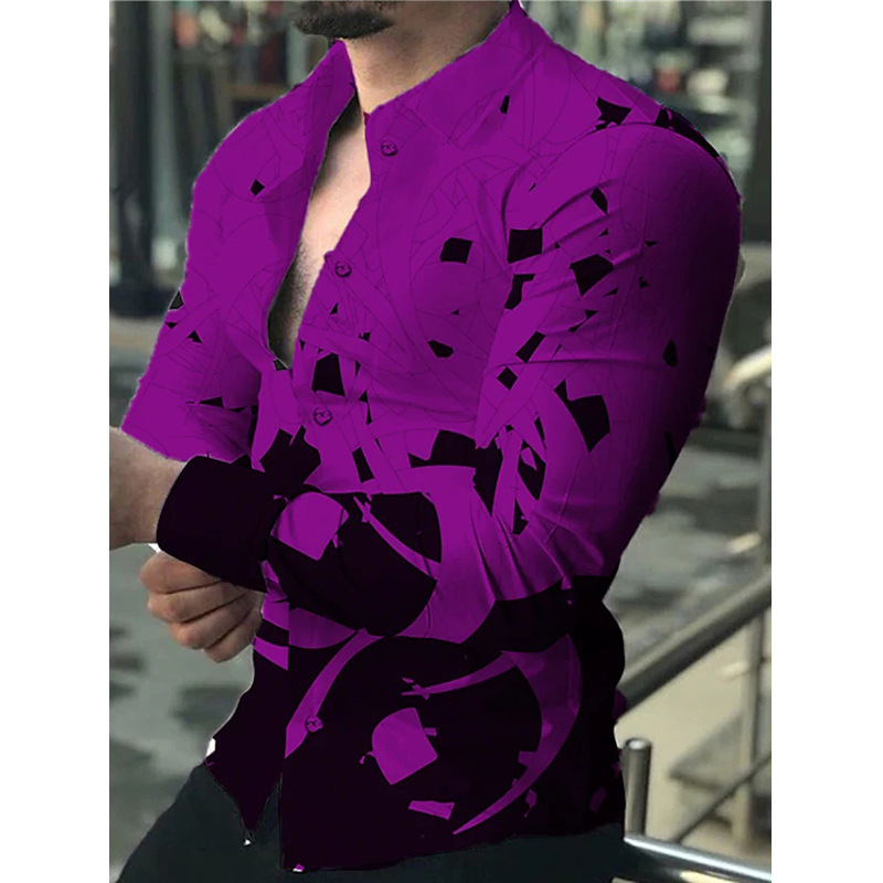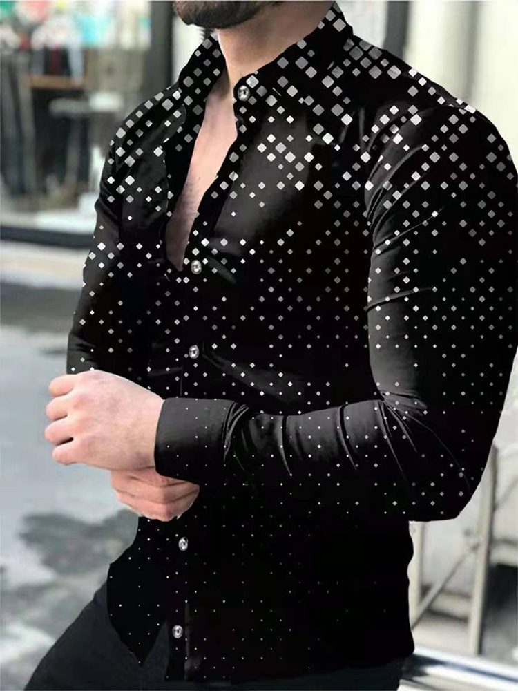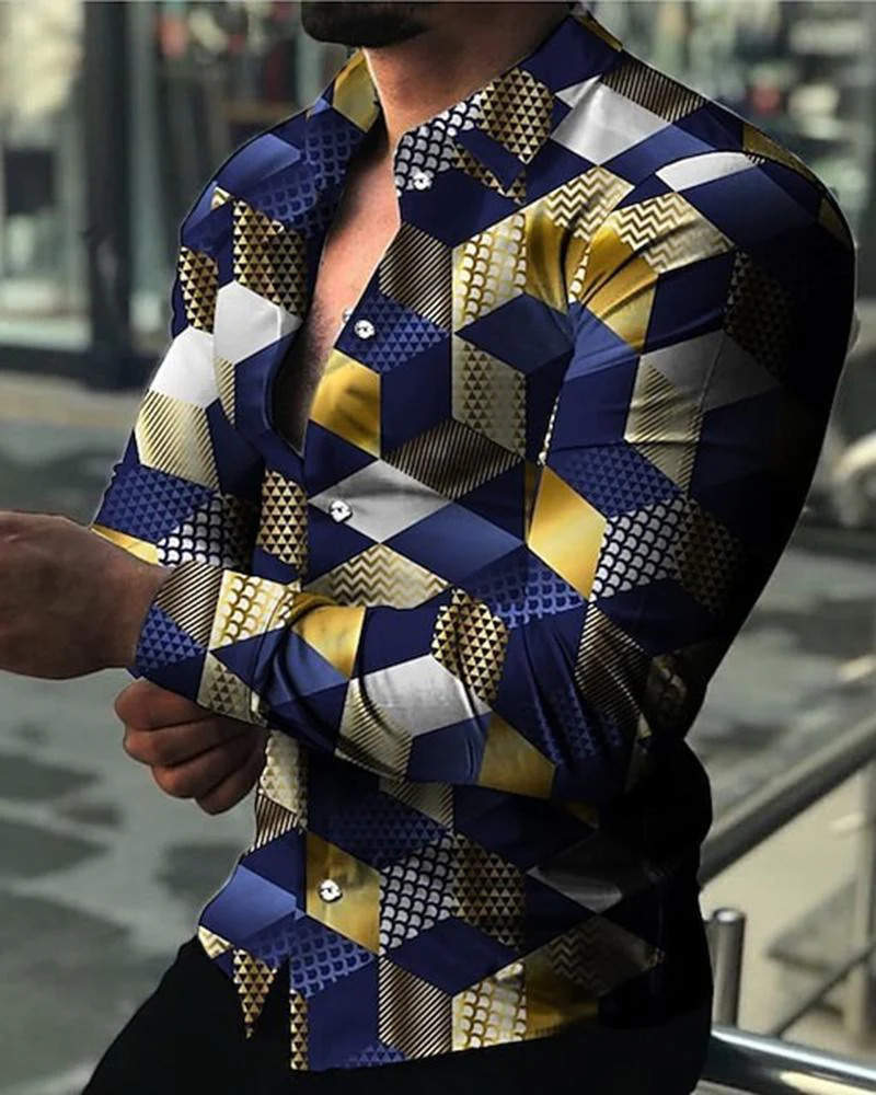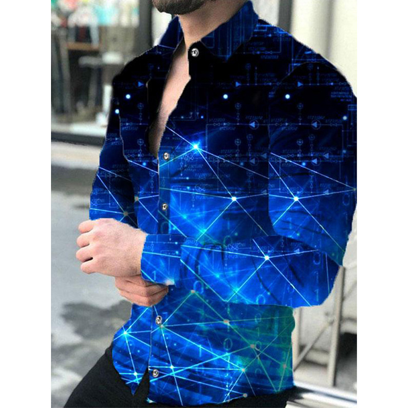 아마존 유럽과 미국 국경 3D 인쇄 남성 패션 기하학적 인쇄 패션 긴 소매 슬림 셔츠 남성스토어 가기
