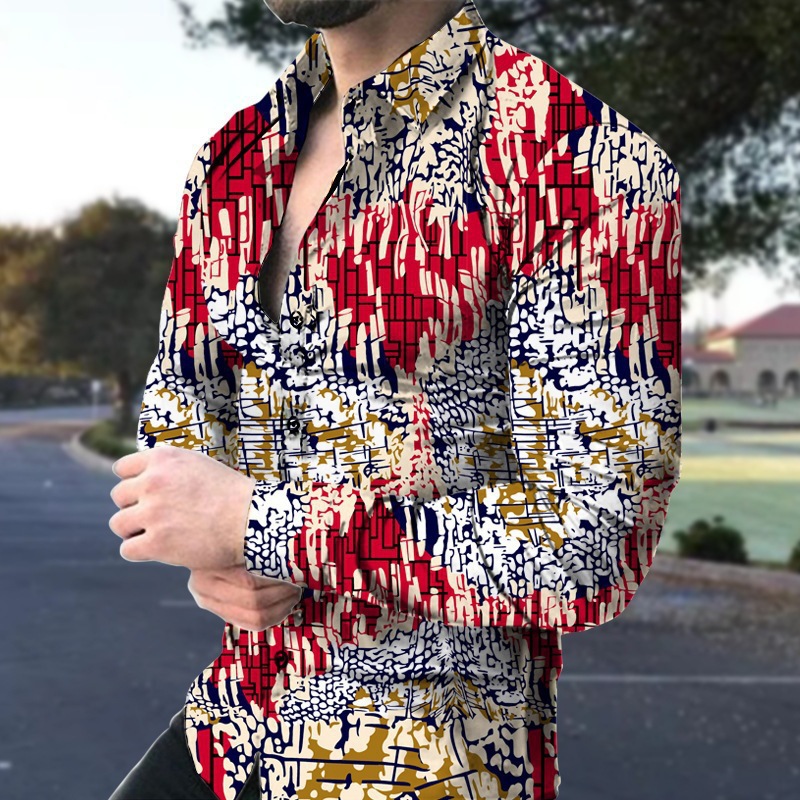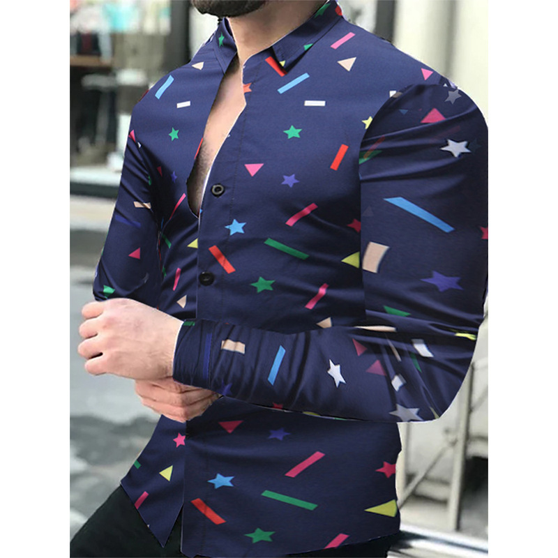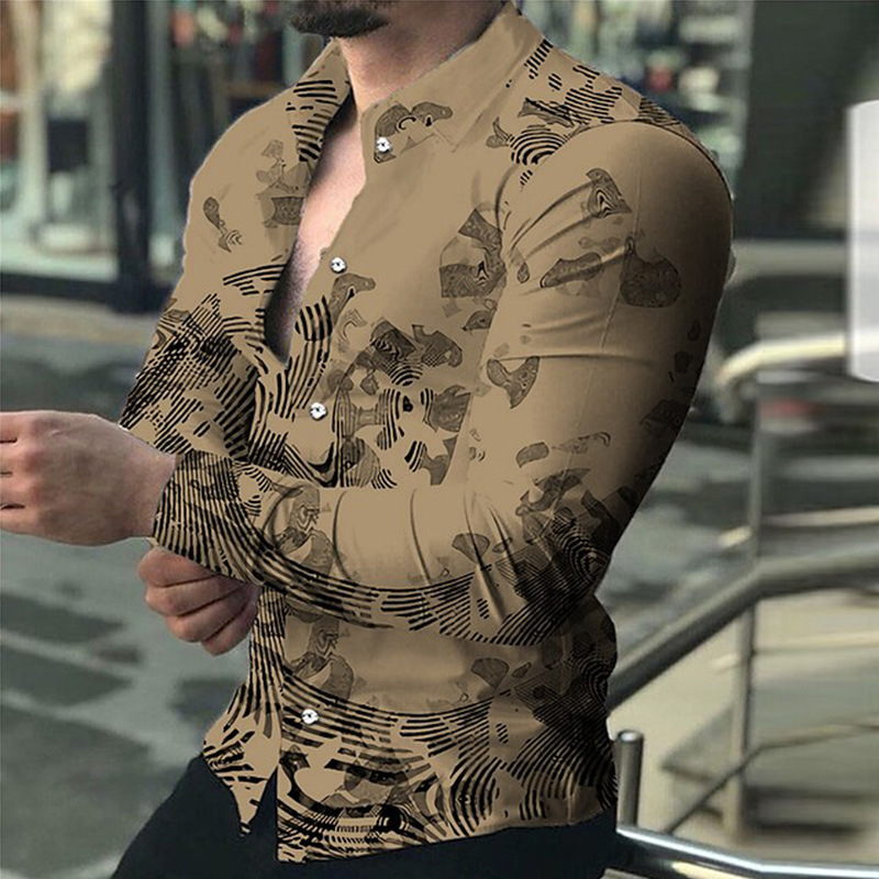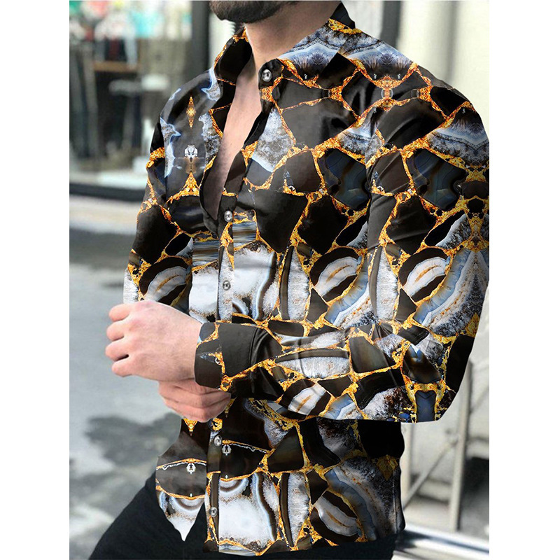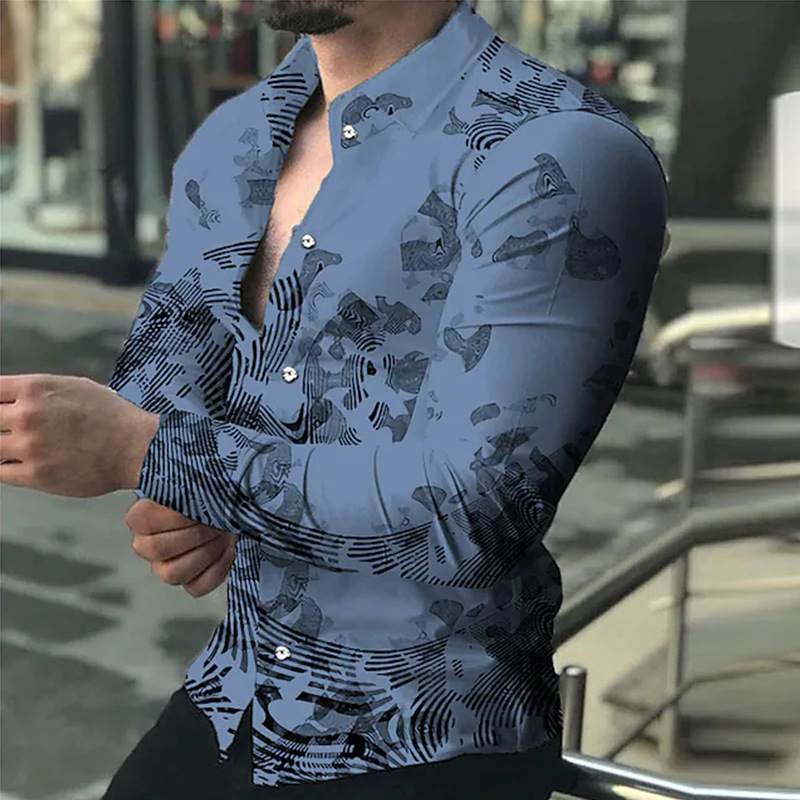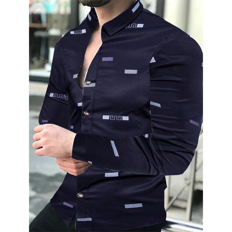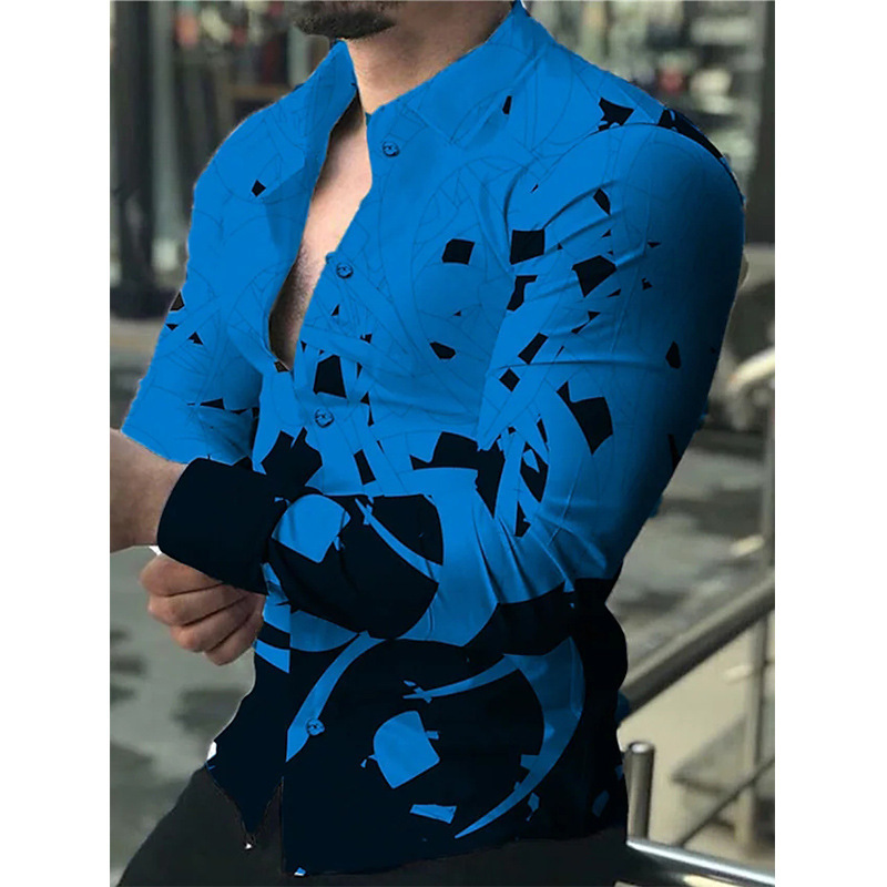 아마존 유럽과 미국 국경 3D 인쇄 남성 패션 기하학적 인쇄 패션 긴 소매 슬림 셔츠 남성