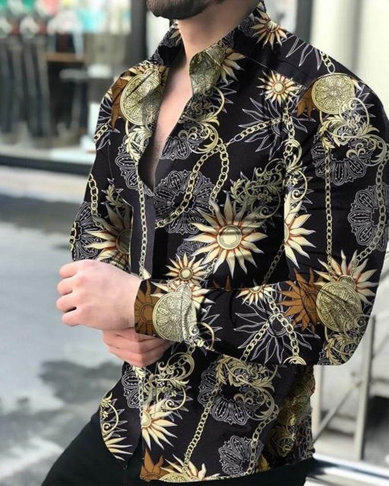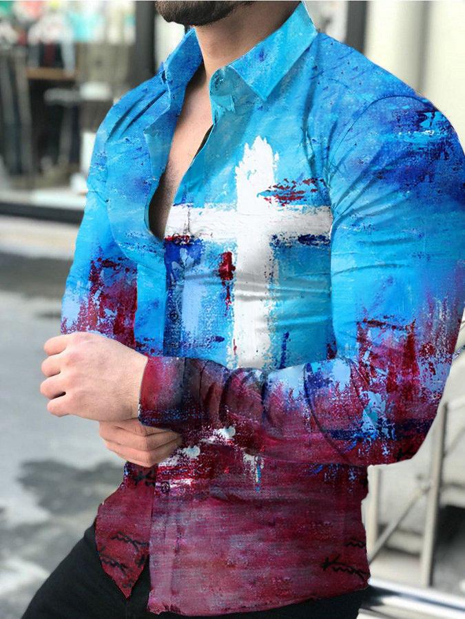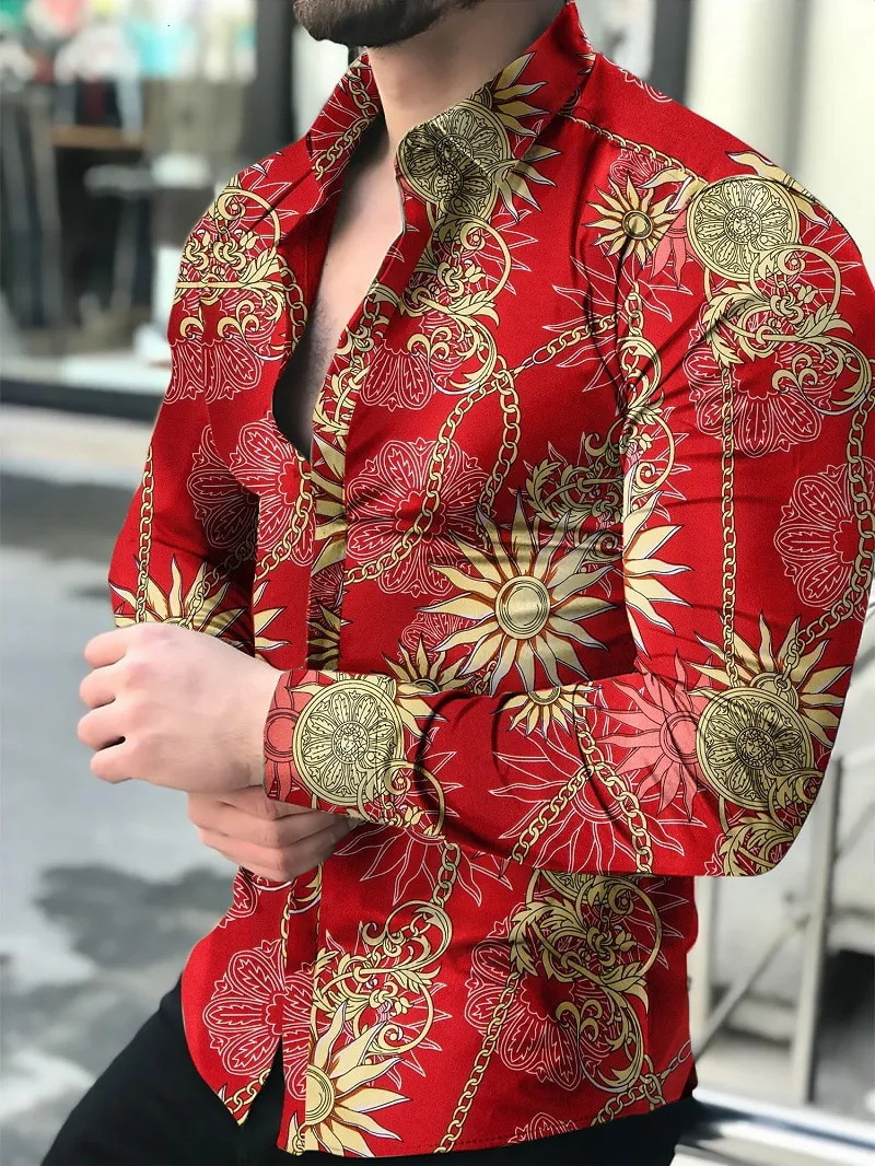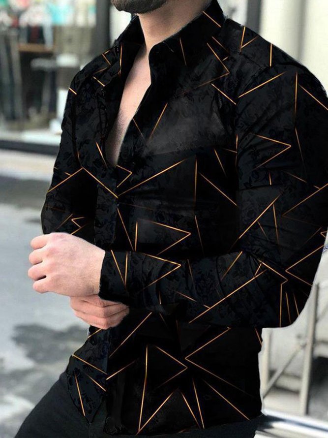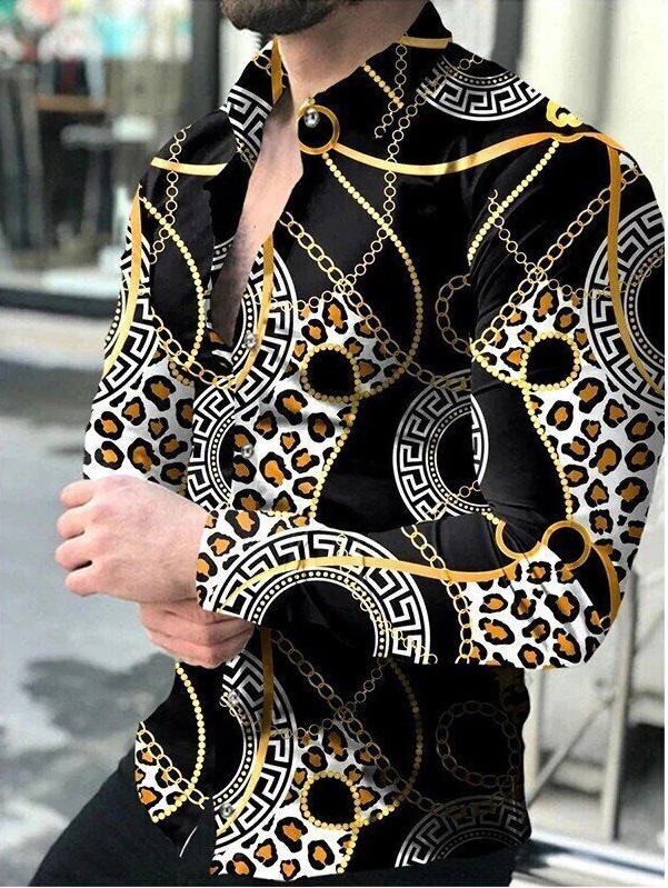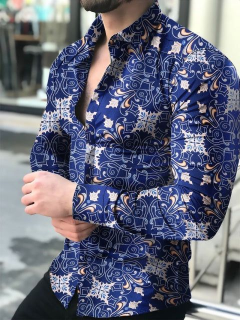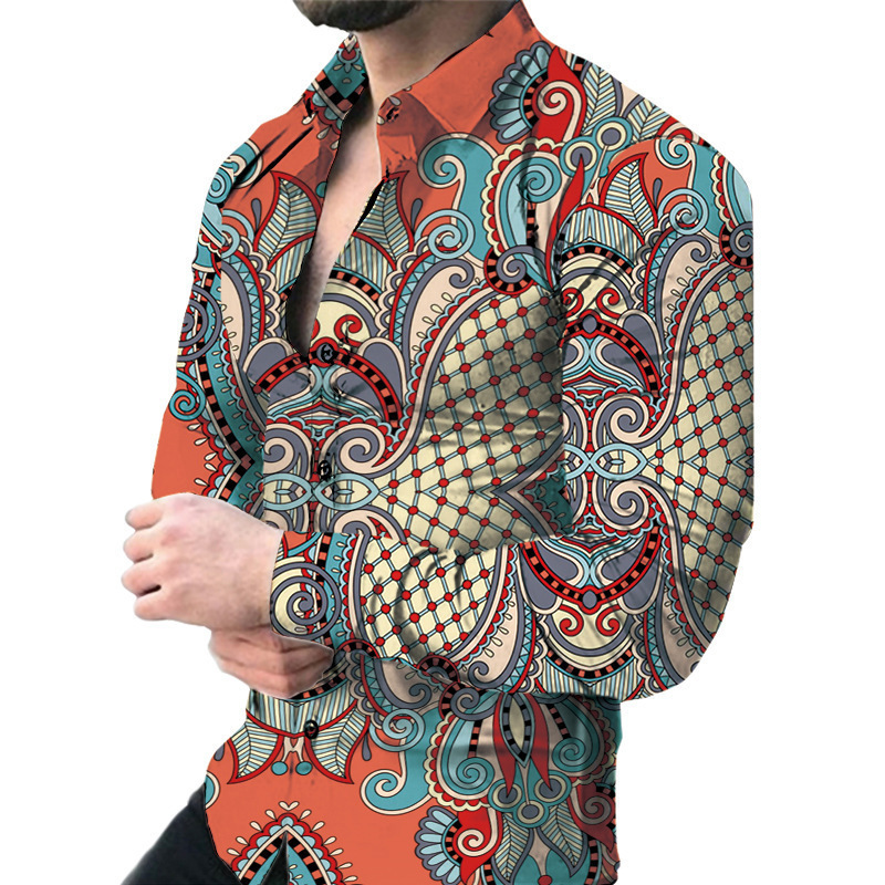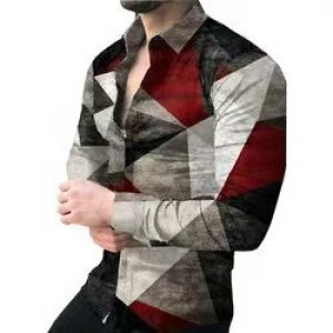 아마존 유럽과 미국 국경 3D 인쇄 남성 패션 기하학적 인쇄 패션 긴 소매 슬림 셔츠 남성